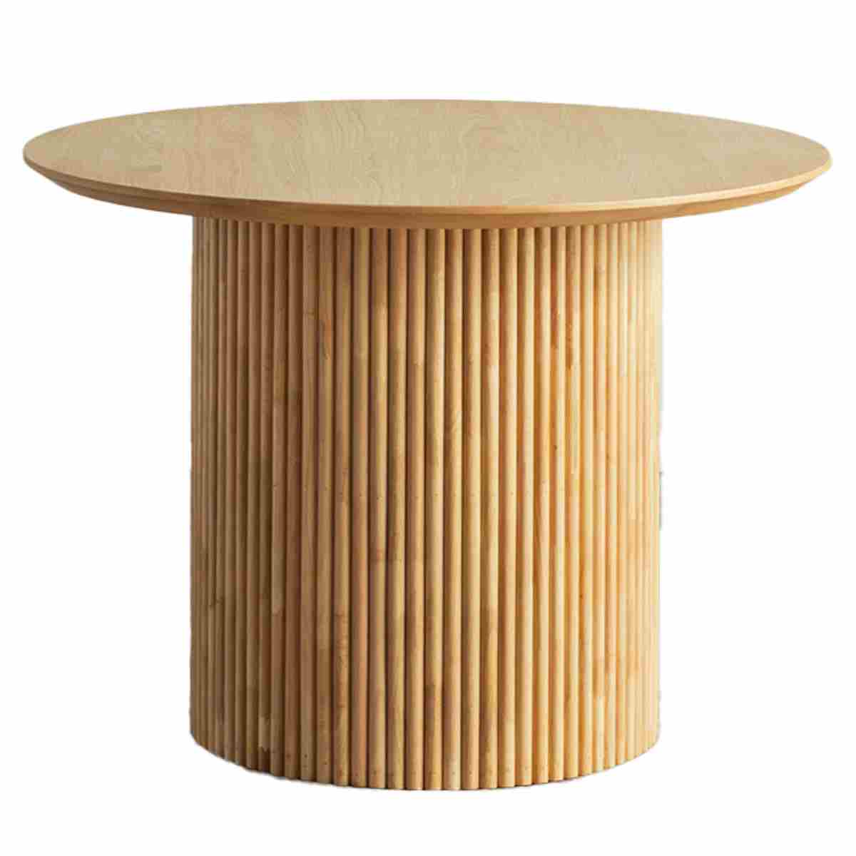 直径100cmの天板は、2人ならゆったり、3人でもほどよい距離感で会話が弾み、4人でも窮屈にならず快適に囲めるサイズです。中央脚デザインでチェアの配置もしやすく、食事からティータイム、作業スペースまで幅広く活躍します。