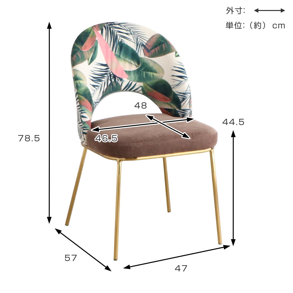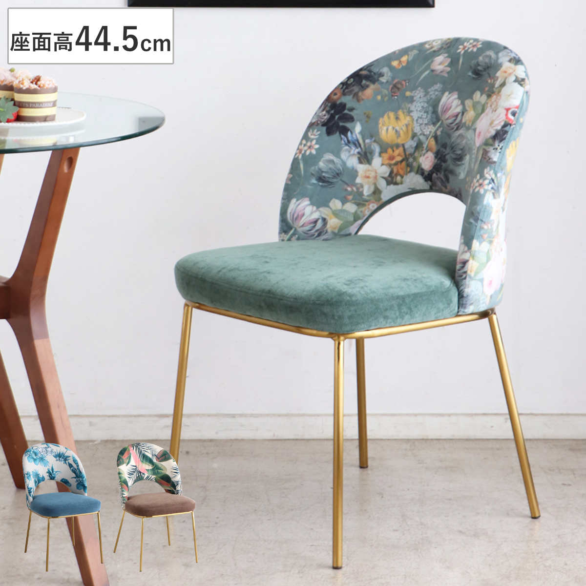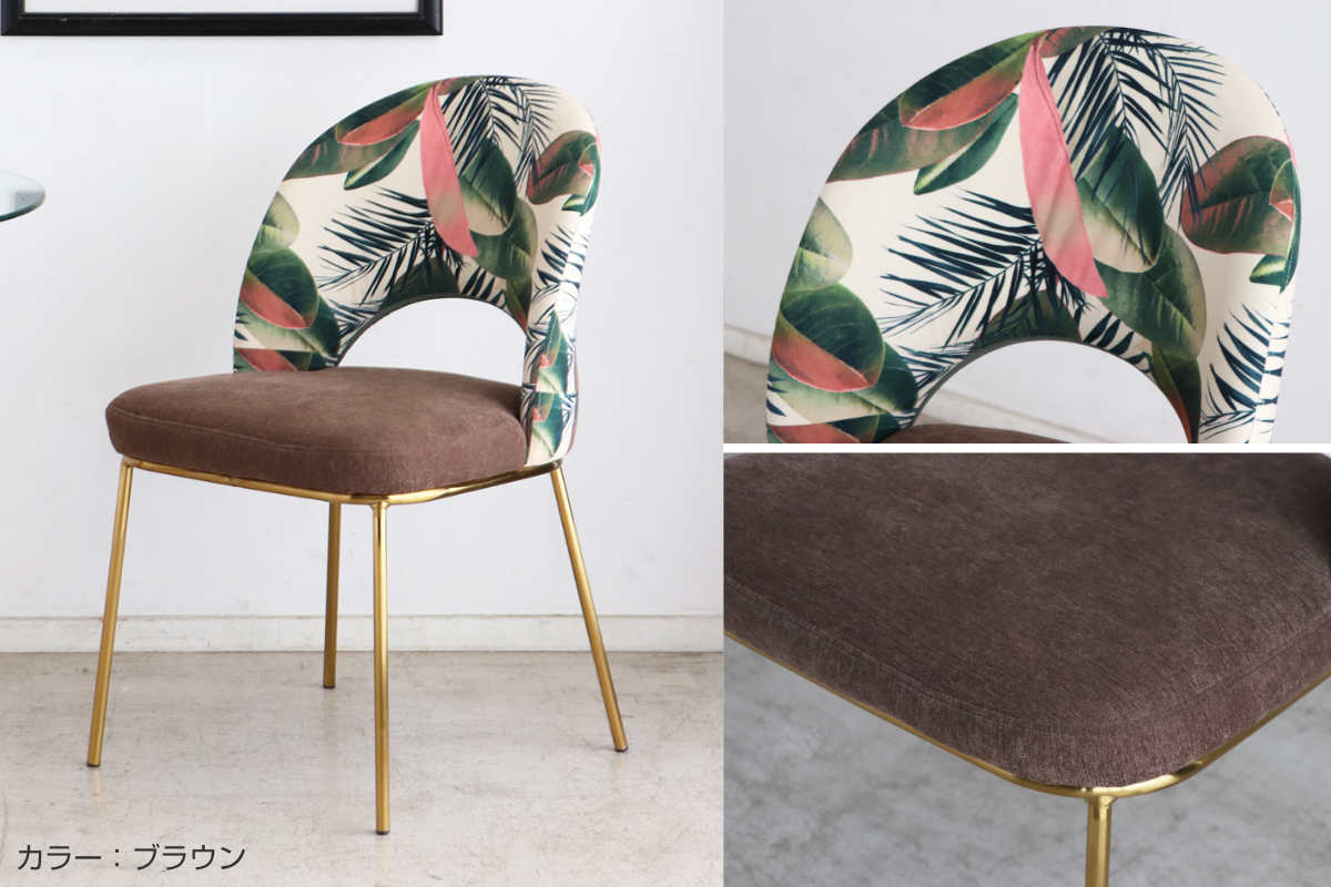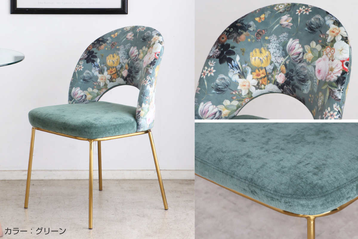 関連キーワード:オシャレ お洒落 スタイリッシュ インテリア 家具 1人用 1人掛け 一人掛け シンプル ダイニング椅子 ゴールド スチール脚 ボタニカル柄 フラワー柄 カフェ