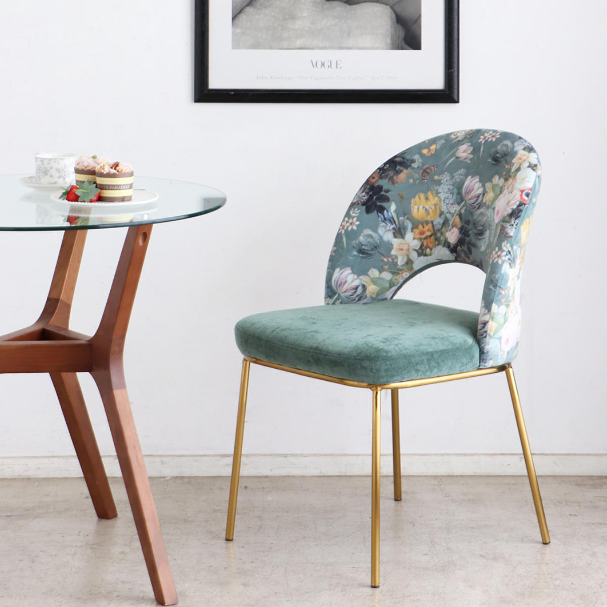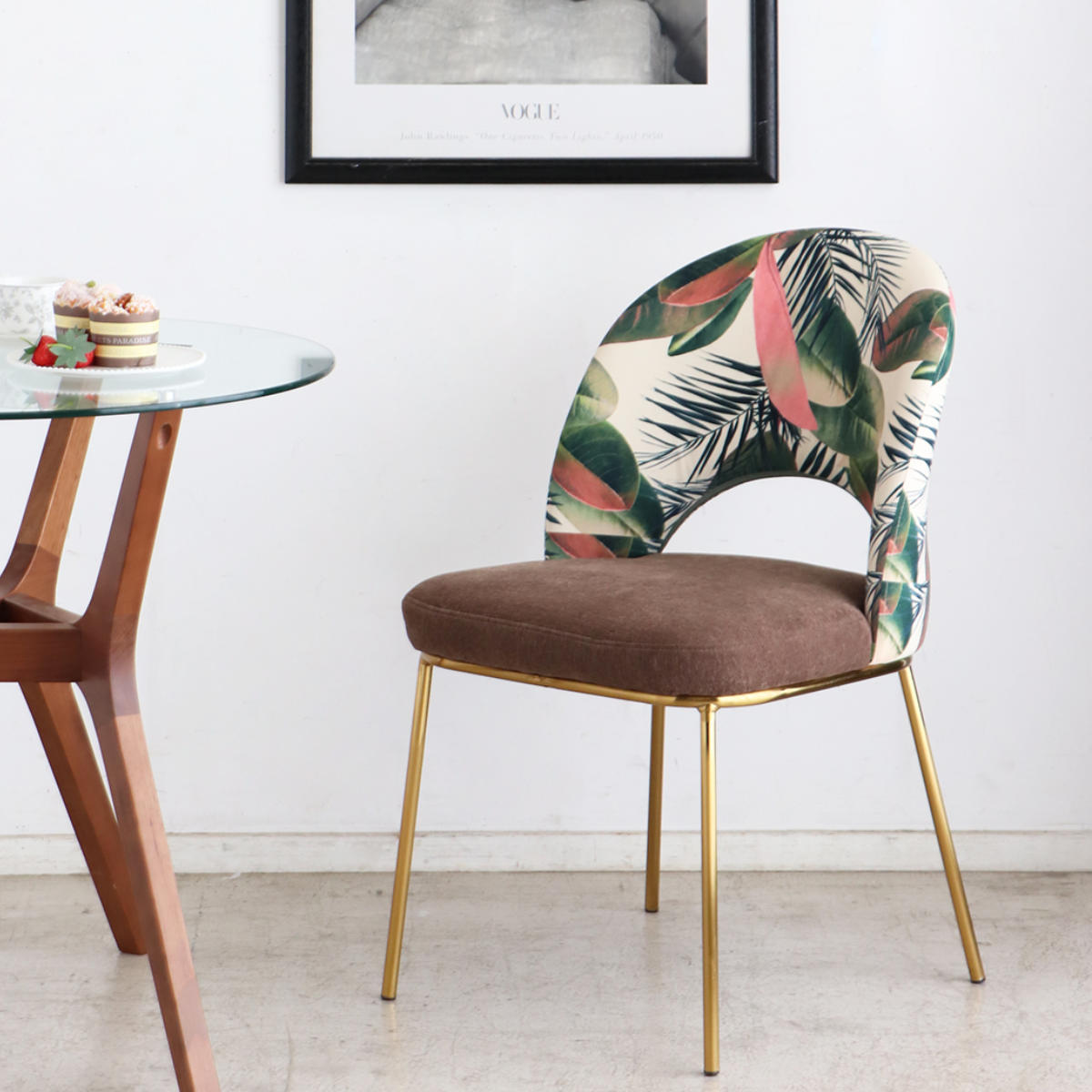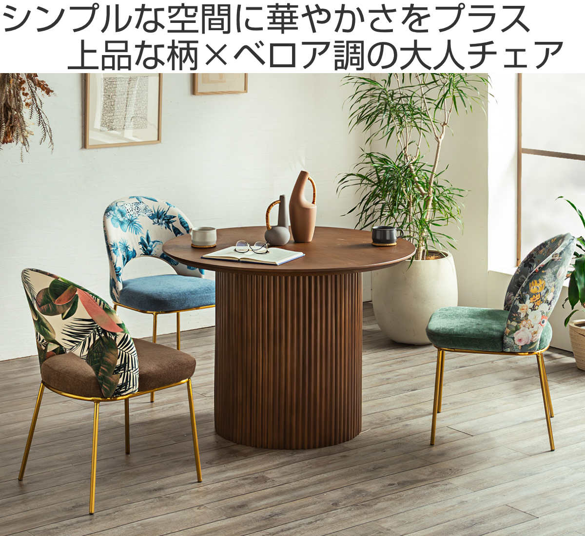 関連キーワード:オシャレ お洒落 スタイリッシュ インテリア 家具 1人用 1人掛け 一人掛け シンプル ダイニング椅子 ゴールド スチール脚 ボタニカル柄 フラワー柄 カフェ