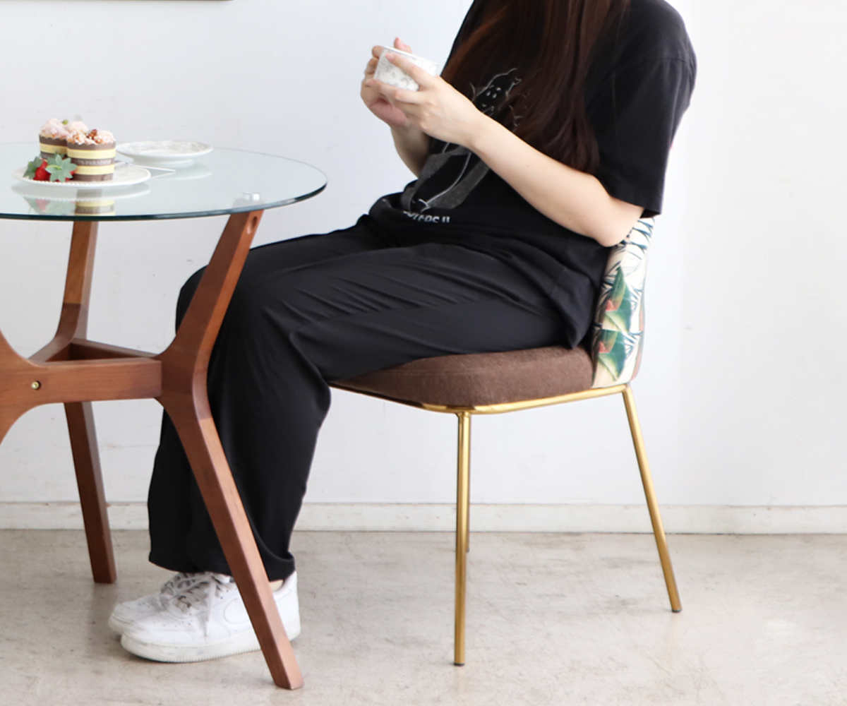 脚部には光沢感のあるゴールドカラーのスチール脚を採用。安定感のある設計で、デザイン性と耐久性を両立しています。