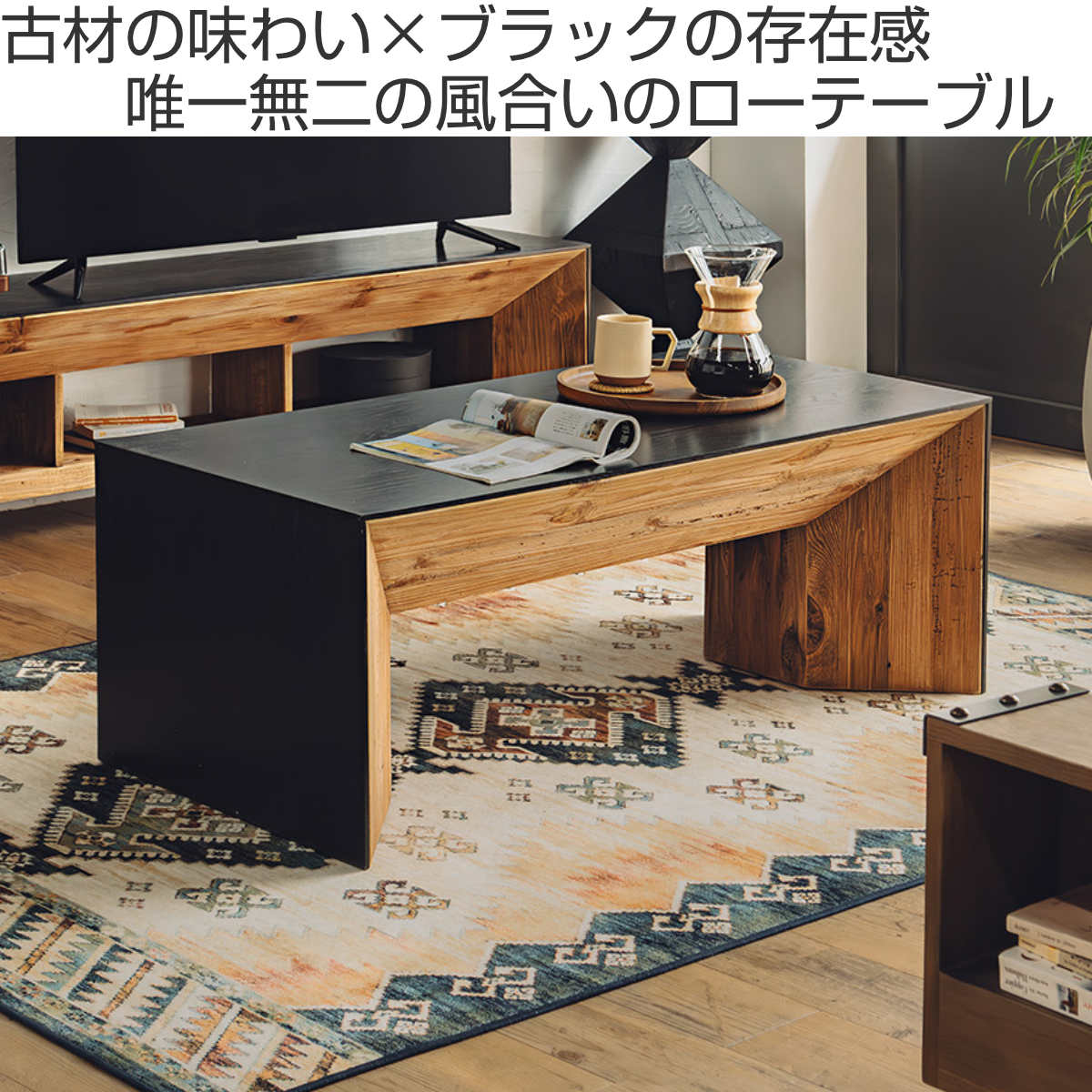 ローテーブル 幅120cm 木製 カント 完成品 ( テーブル センターテーブル 天然木 パイン古材 リビングテーブル 長方形 奥行60cm 木目調 木目 節 リビング カフェテーブル コーヒーテーブル 作業台 )