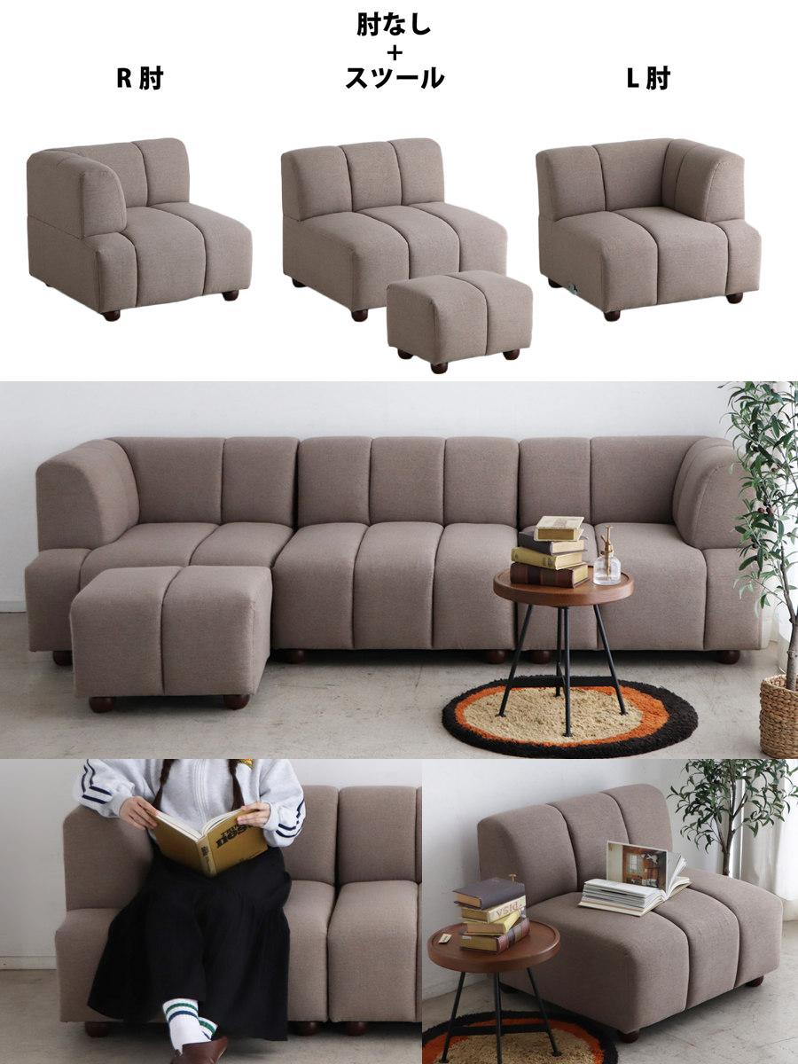シリーズのL肘タイプ、肘なしタイプを自由に組み合わせて、自分だけのレイアウトに。 お部屋の広さや暮らしのシーンに合わせて、柔軟にスタイルを変えられるソファシリーズです。