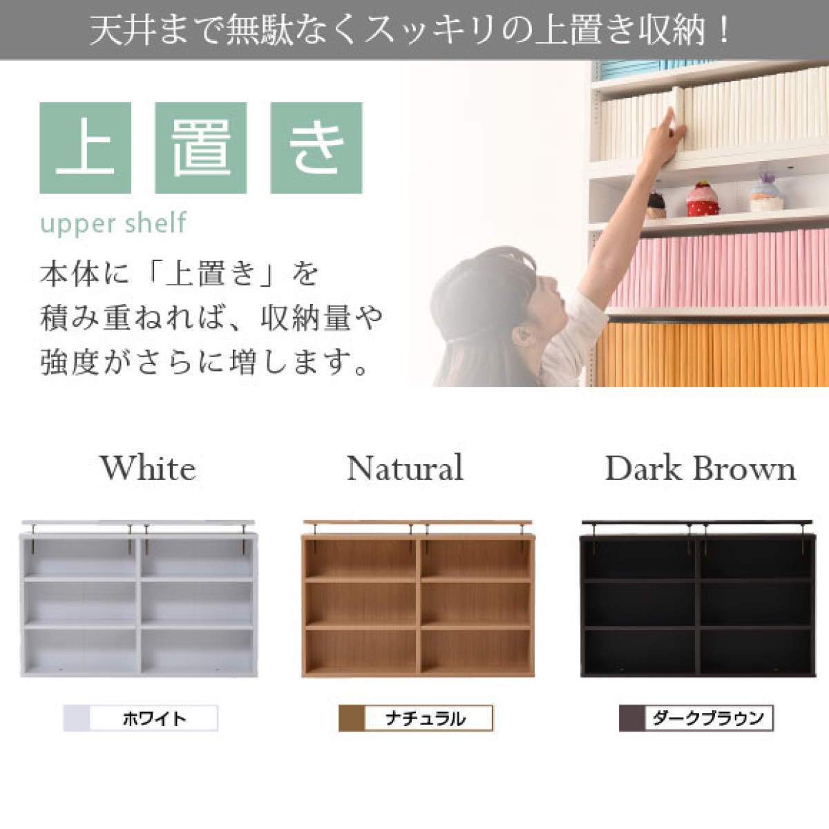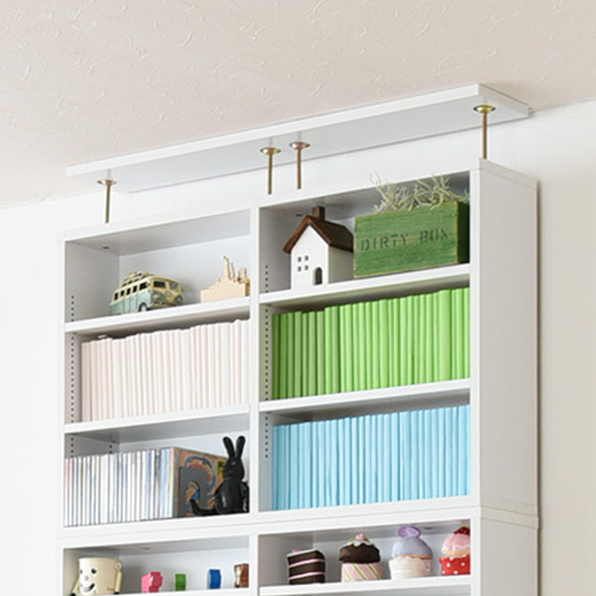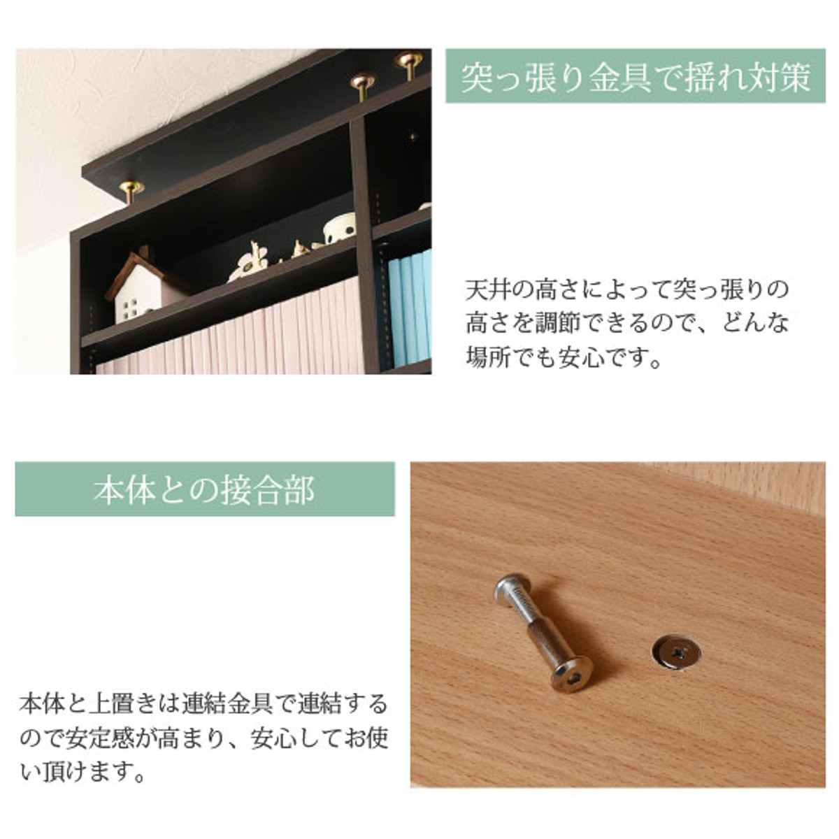 単体の本棚とセットでお使いいただける上置棚です。本体の上に設置することで、限られたスペースを無駄なく活用でき、収納量がさらにアップ。しっかり固定することで安定感も高まり、安心してお使いいただけます。