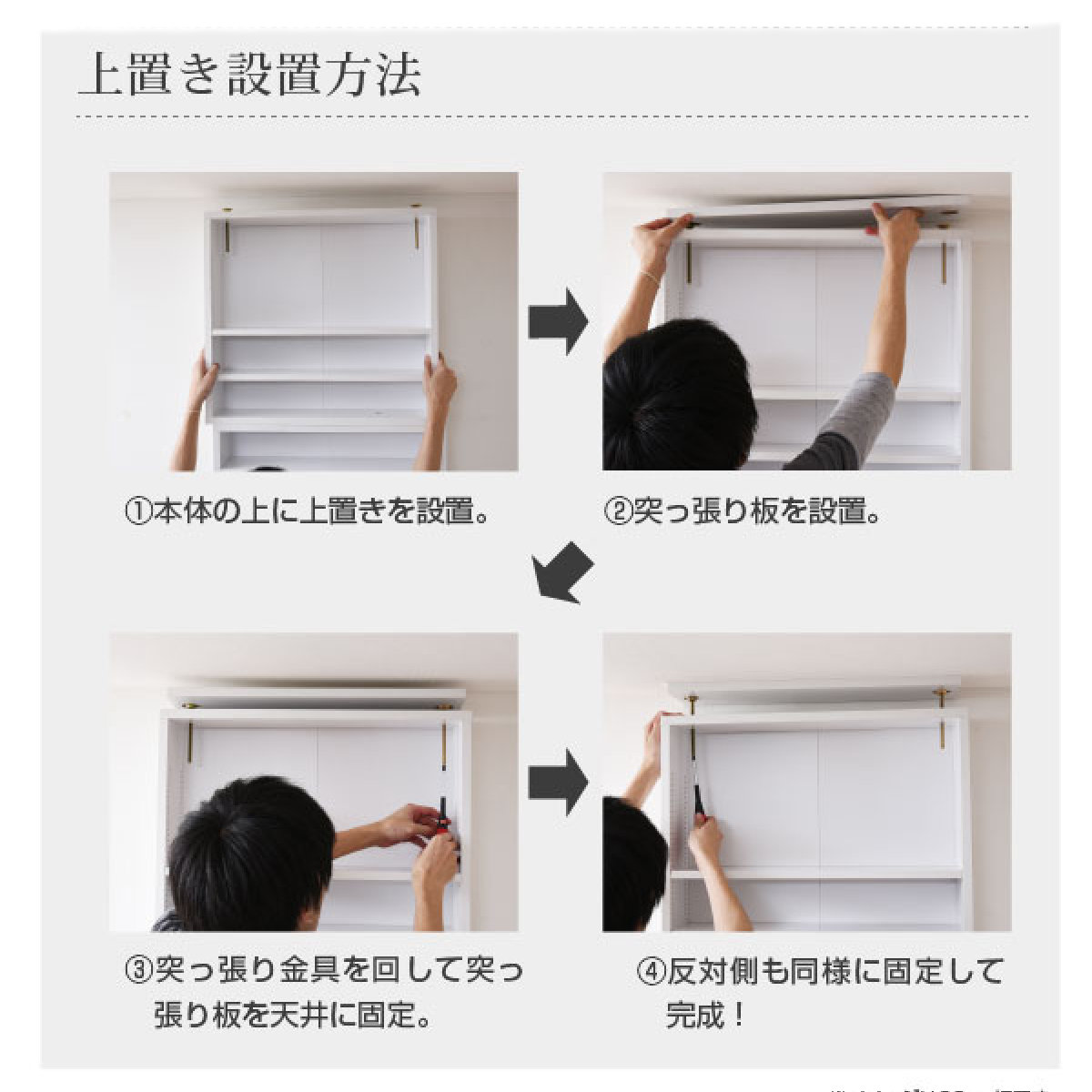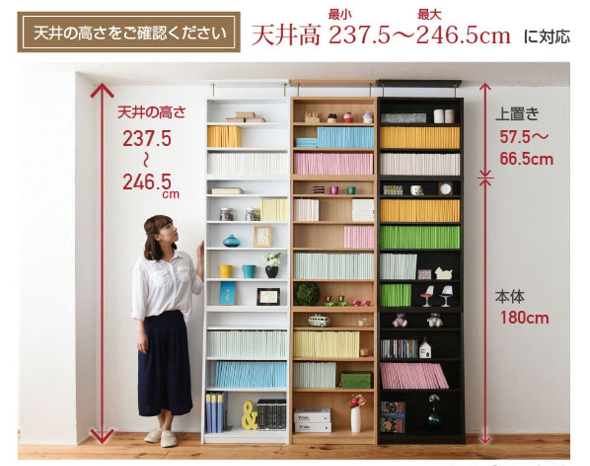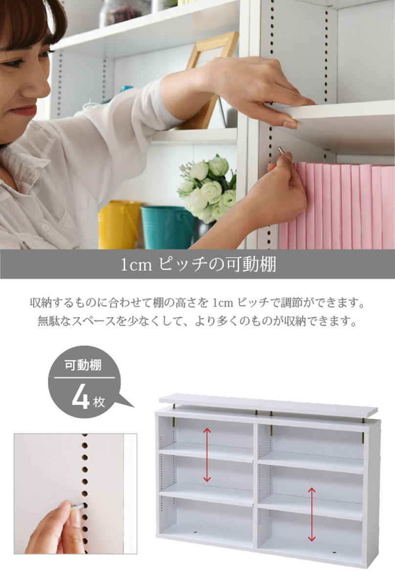 単体の本棚とセットでお使いいただける上置棚です。本体の上に設置することで、限られたスペースを無駄なく活用でき、収納量がさらにアップ。しっかり固定することで安定感も高まり、安心してお使いいただけます。