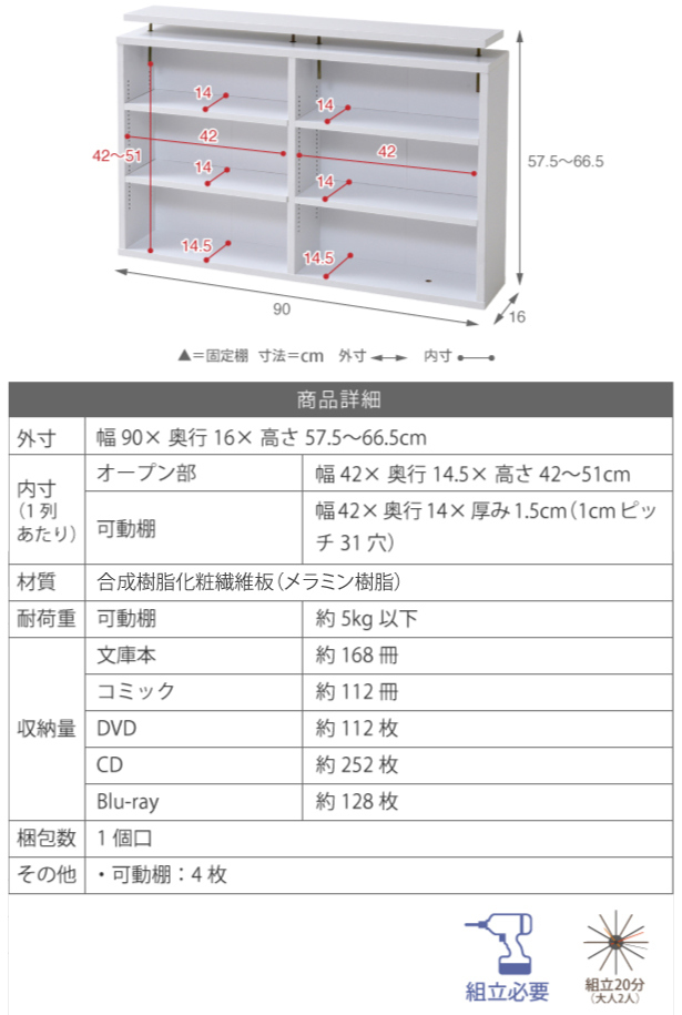 | サイズ | 約 幅90×奥行16×高さ57.5~66.5(cm) |