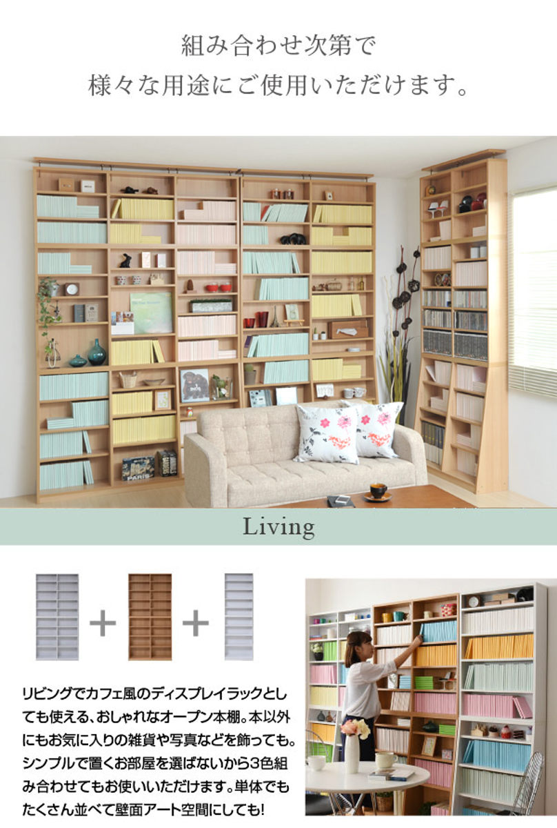 1cm間隔で棚板の移動ができるので収納するものに合わせて高さを調節できます。そのため無駄なスペースがなくなり、通常の本棚よりたくさん収納することができます。