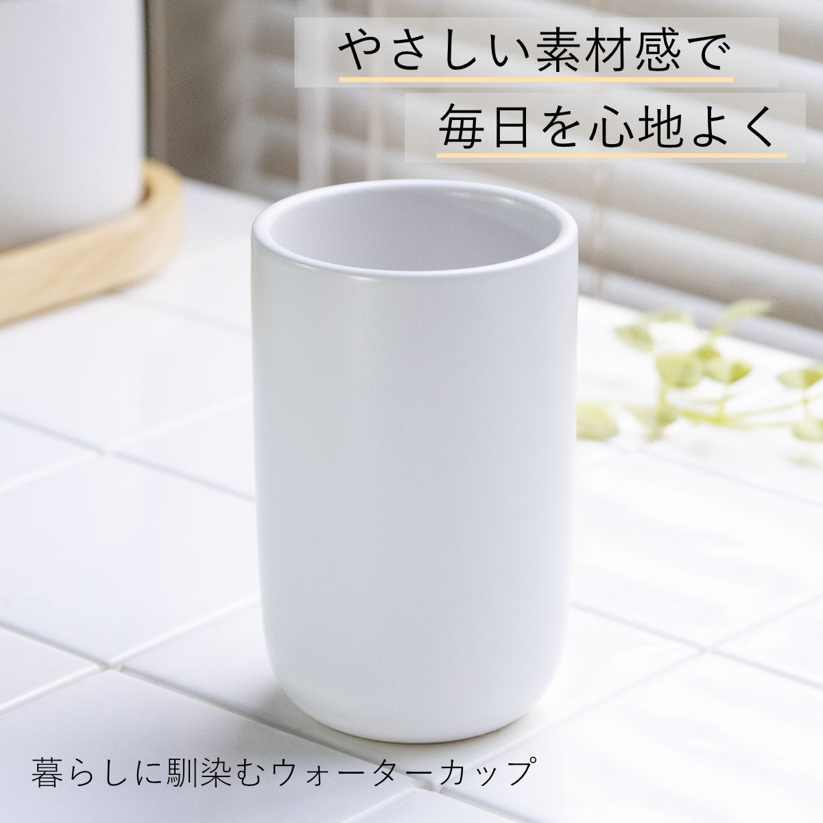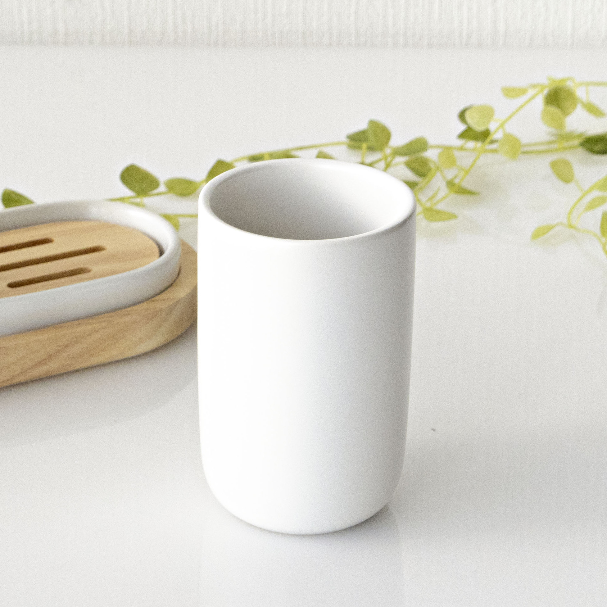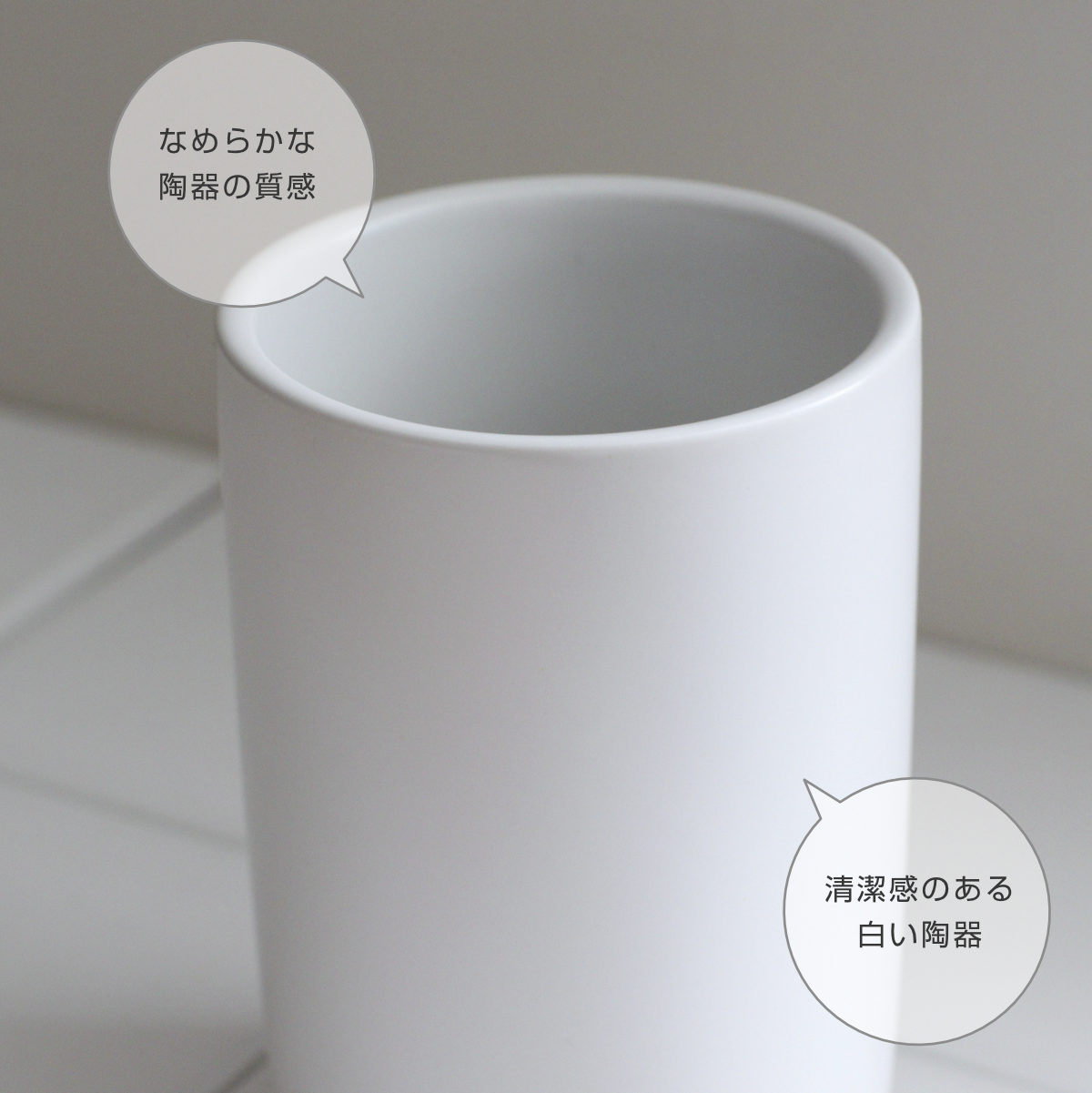 毎日の身支度に使いやすく、清潔感のある陶器が心地よくなじみます。うがいや口すすぎに使いやすい、ゆとりのあるサイズ感です。