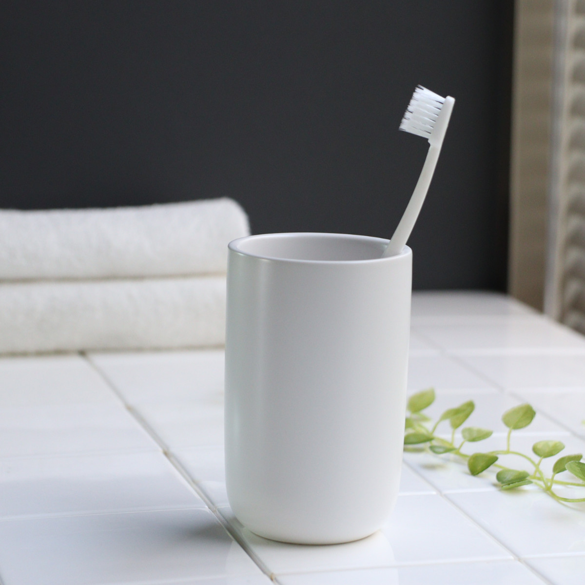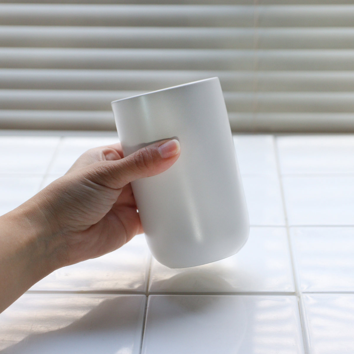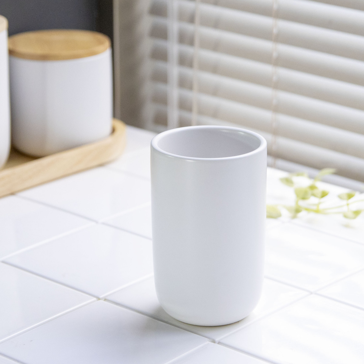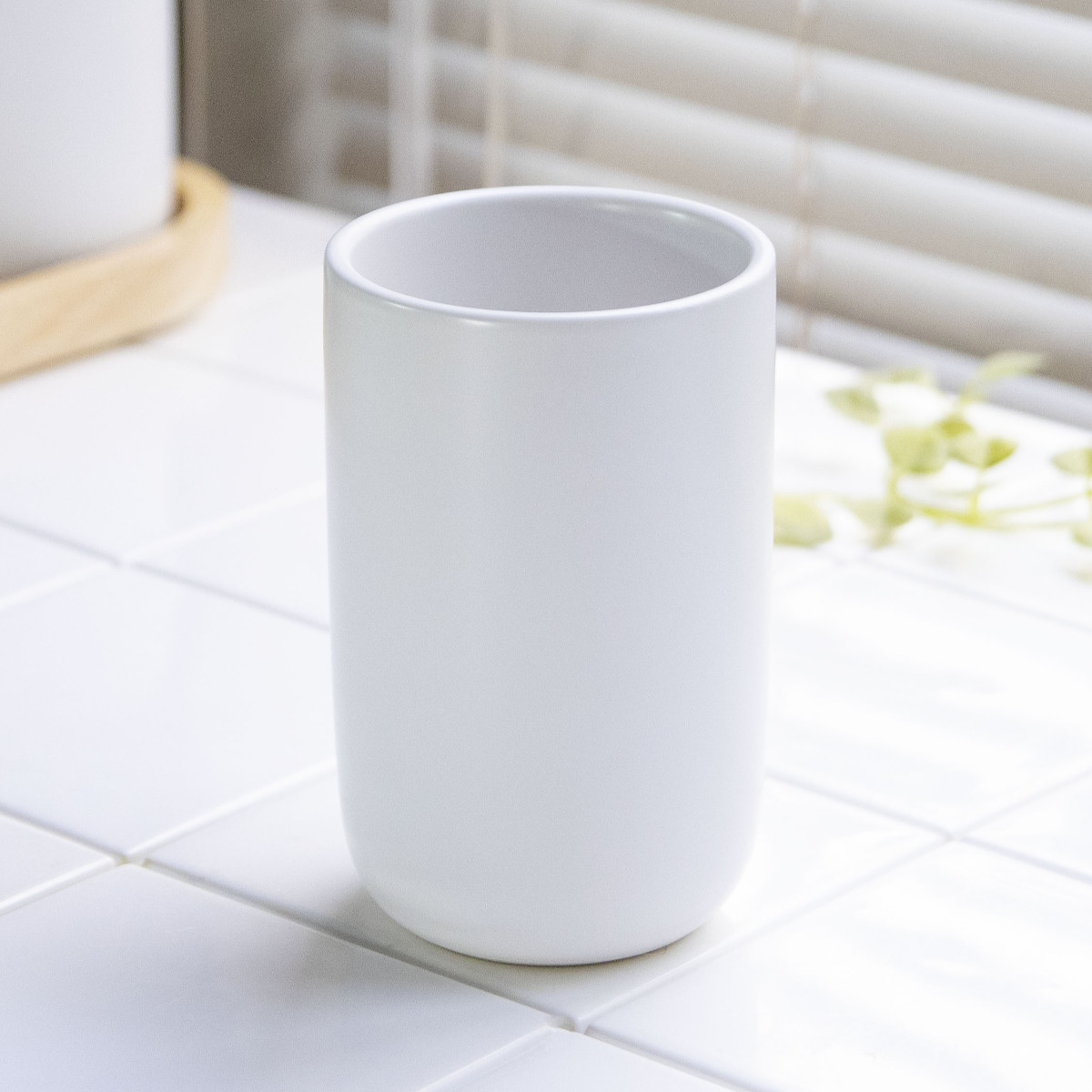 毎日の身支度に使いやすく、清潔感のある陶器が心地よくなじみます。うがいや口すすぎに使いやすい、ゆとりのあるサイズ感です。