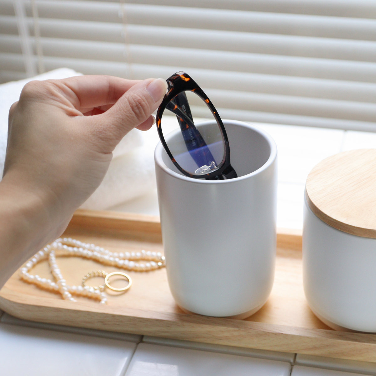シリーズで揃えることで、洗面まわりに統一感が生まれすっきりとした印象に。日々の暮らしに、さりげない心地よさを添えます。