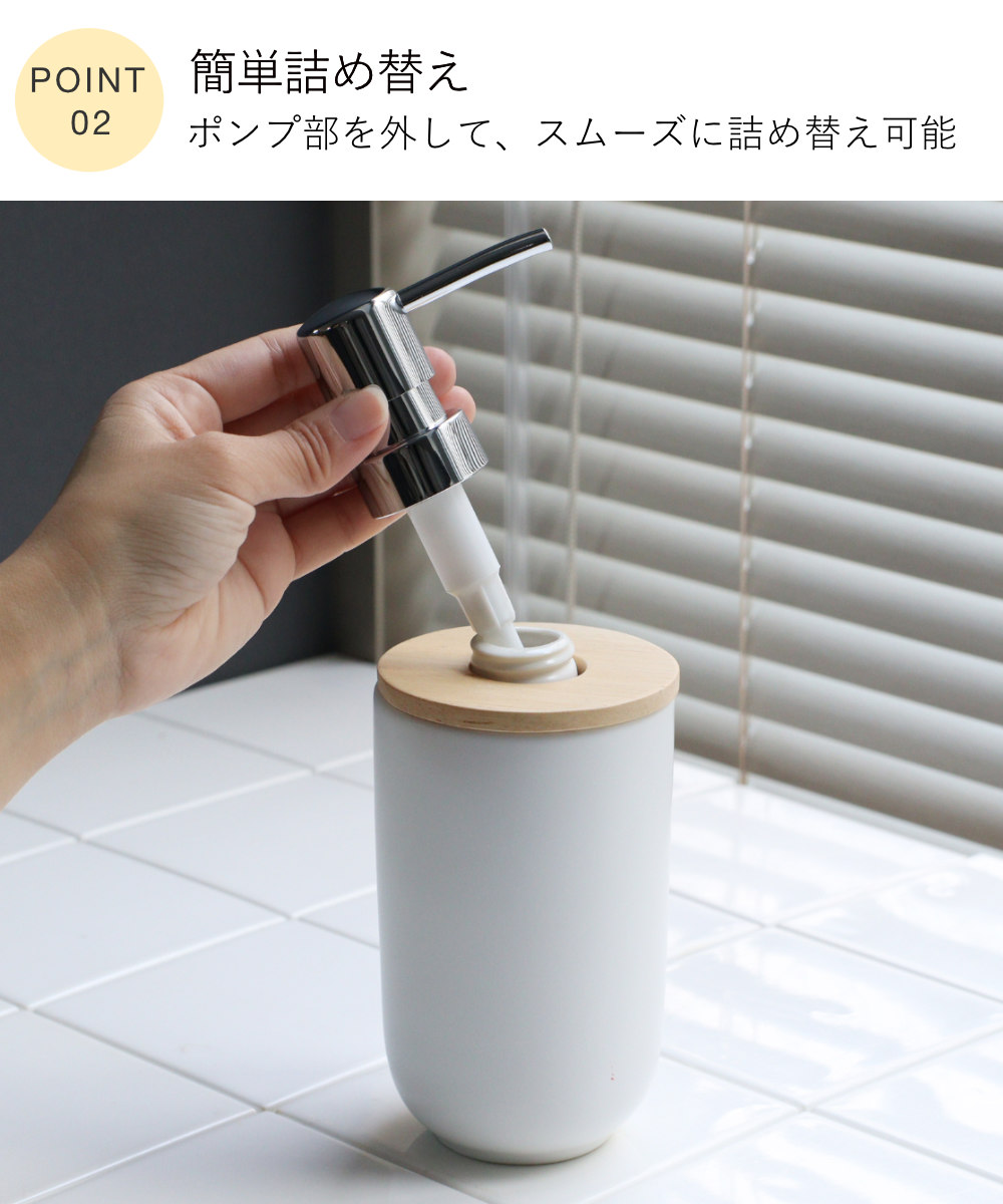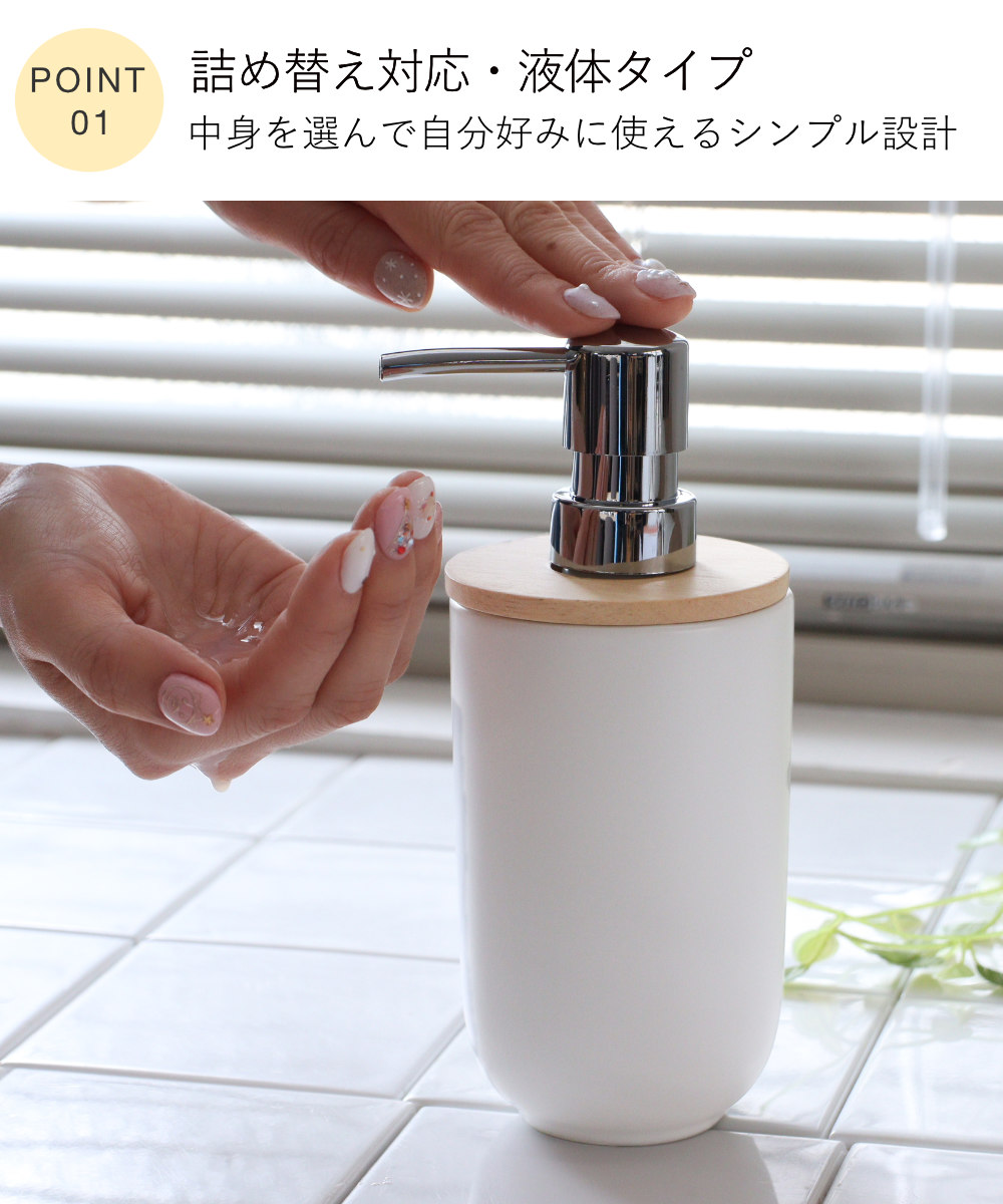 関連キーワード:ハンドソープ 液体 つめかえ 詰替え 手洗い 手あらい 洗面所 キッチン トイレ 水周り 水回り 洗面グッズ 洗面スペース サニタリー トイレタリー 衛生的 高級感 都会的 清潔感 ホテルライク ギフト 贈り物 プレゼント おしゃれ お洒落 オシャレ かわいい 可愛い カワイイ 新生活 おすすめ オススメ 人気 便利 日常使い 日常 天然木 白 しろ ほわいと
