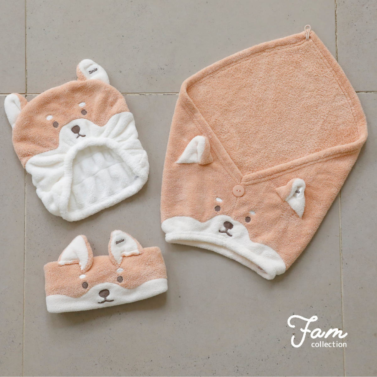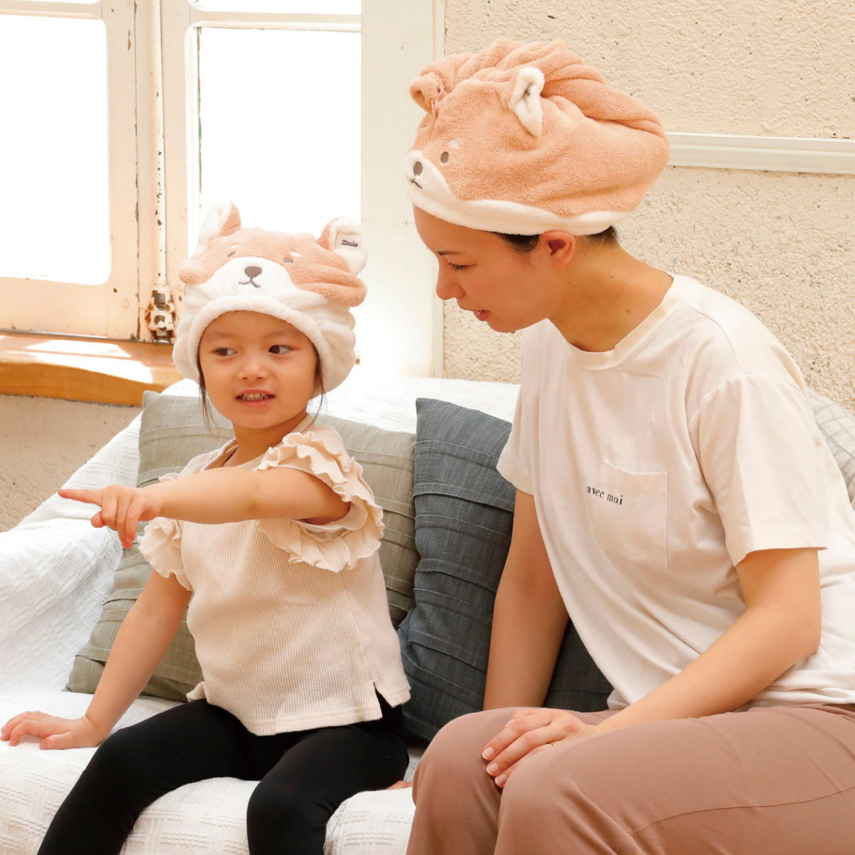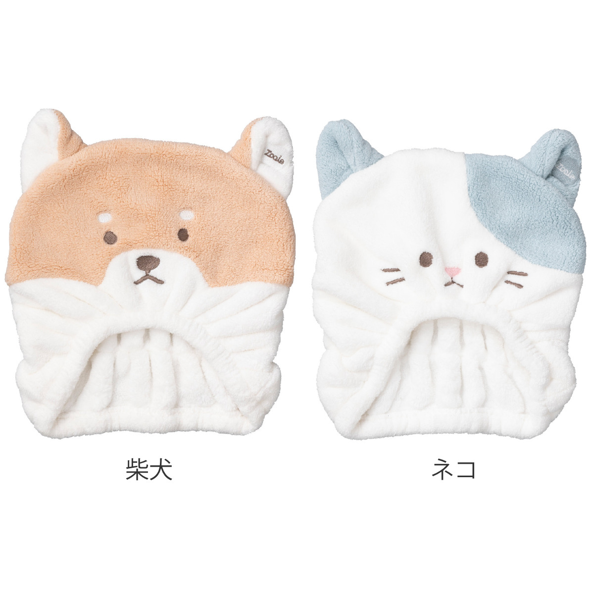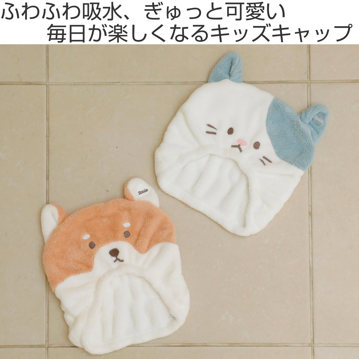 ヘアキャップ キッズキャップ 吸水アニマルキッズキャップ Zooie fam ( ドライキャップ マイクロファイバー 子ども キッズ 吸水 速乾 タオルキャップ 吸水タオル 吸水キャップ 風呂上り プール 動物 アニマル 顔 ) 【柴犬】