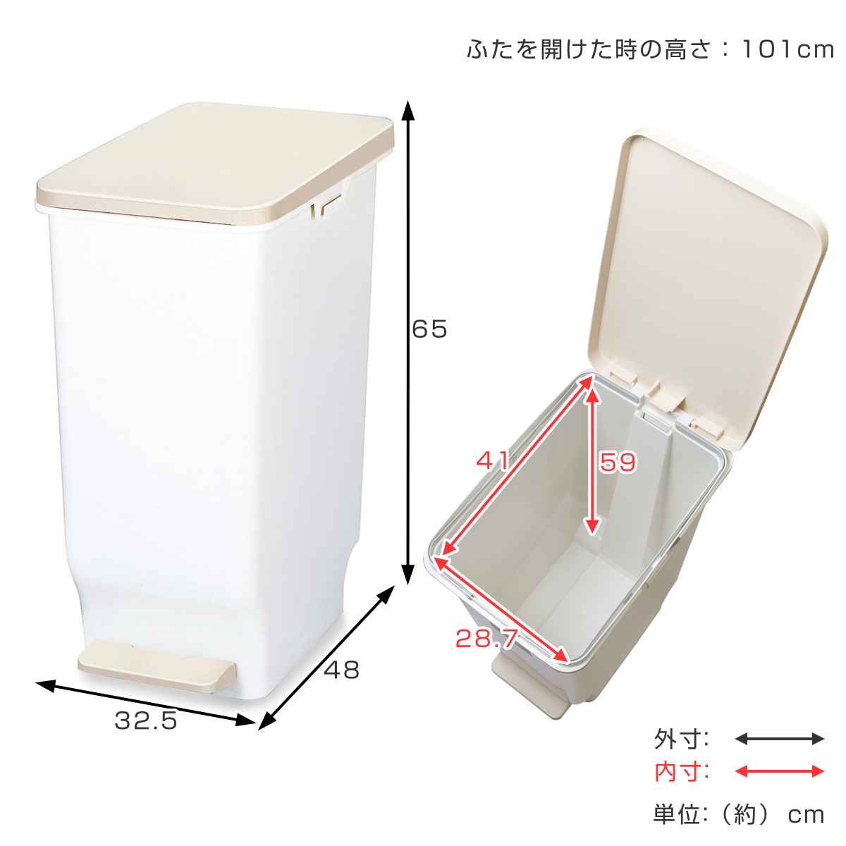 | サイズ | 外寸:約 幅32.5×奥行48×高さ65(cm) 内寸:約 幅28.7×奥行41×高さ59(cm) ふたを開けた時の高さ:約101(cm) |