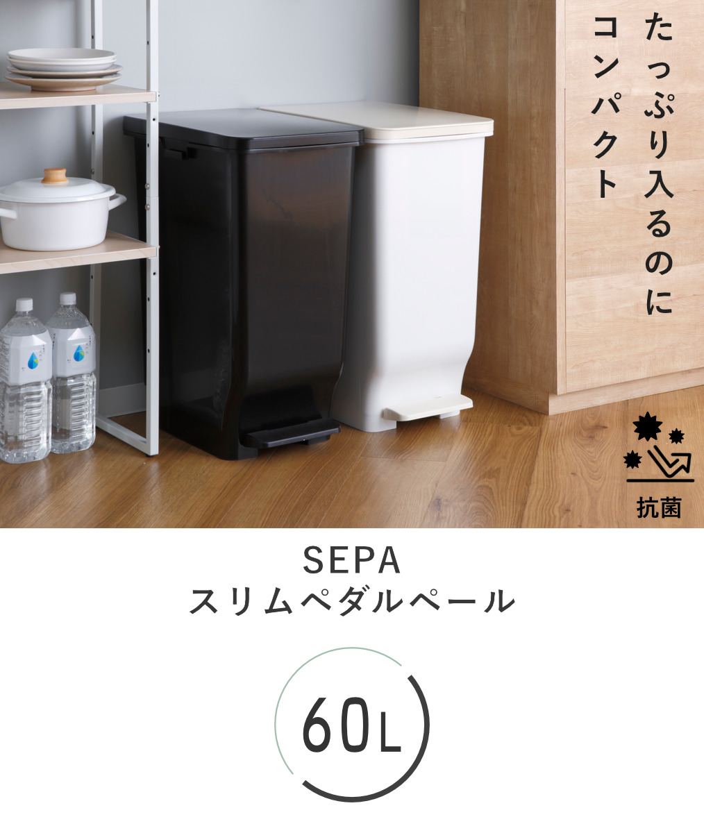 【当店オリジナルカラー】ゴミ箱 60L ふた付き セパ 抗菌 分別 スリム ペダルペール ( 当店限定カラー ブラック ごみ箱 60リットル 幅 32.5cm ペダル式 キッチン 大容量 リビング 抗菌加工 SEPA ゴミ ごみ 袋止め 角型 約30cm ) 【ブラック】