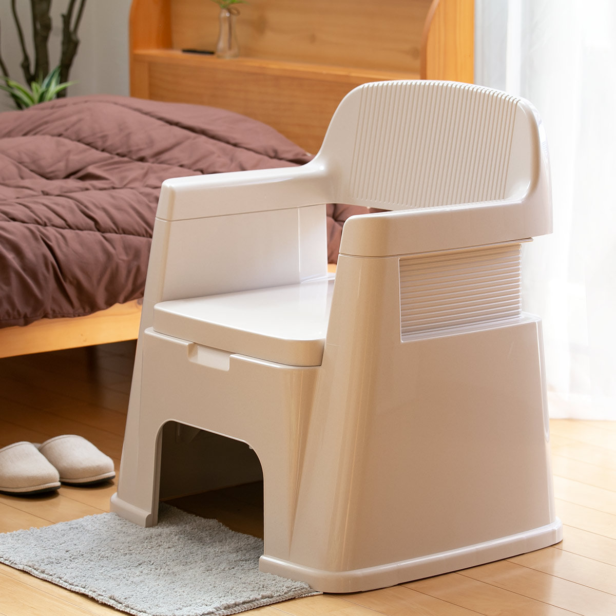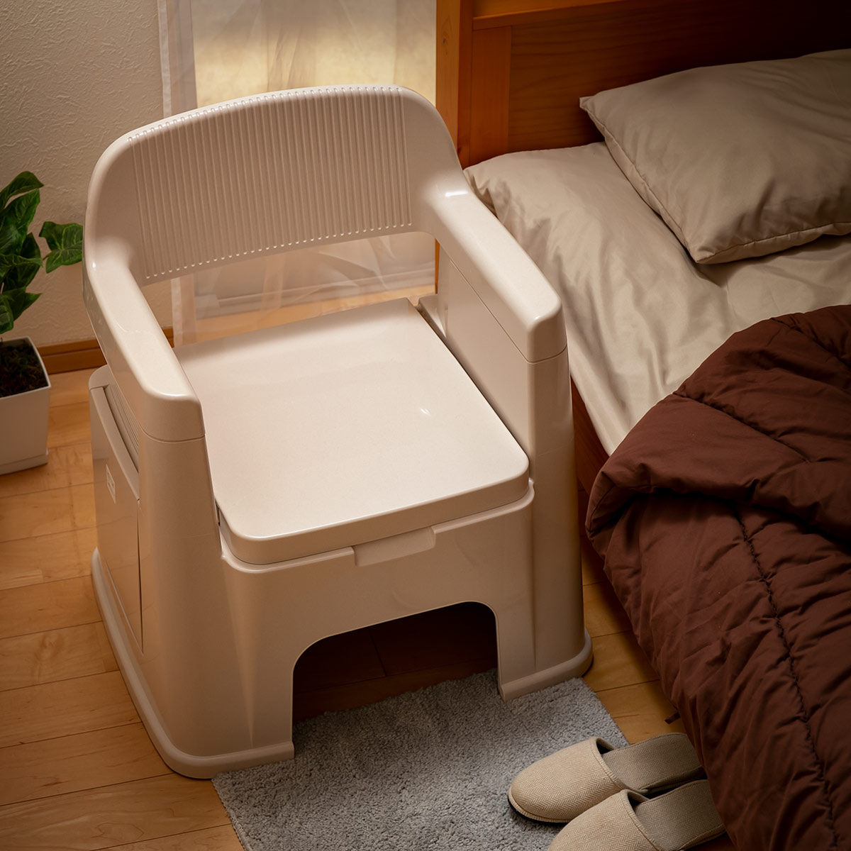 介護される方も、する方も気持ちよく使えるポータブルトイレです。足腰に自信が無くなってきた方や、寝室のそばにトイレが無く移動が不安な方にお薦めです。ベッドサイドに設置しておくと介護の負担を軽減できます。