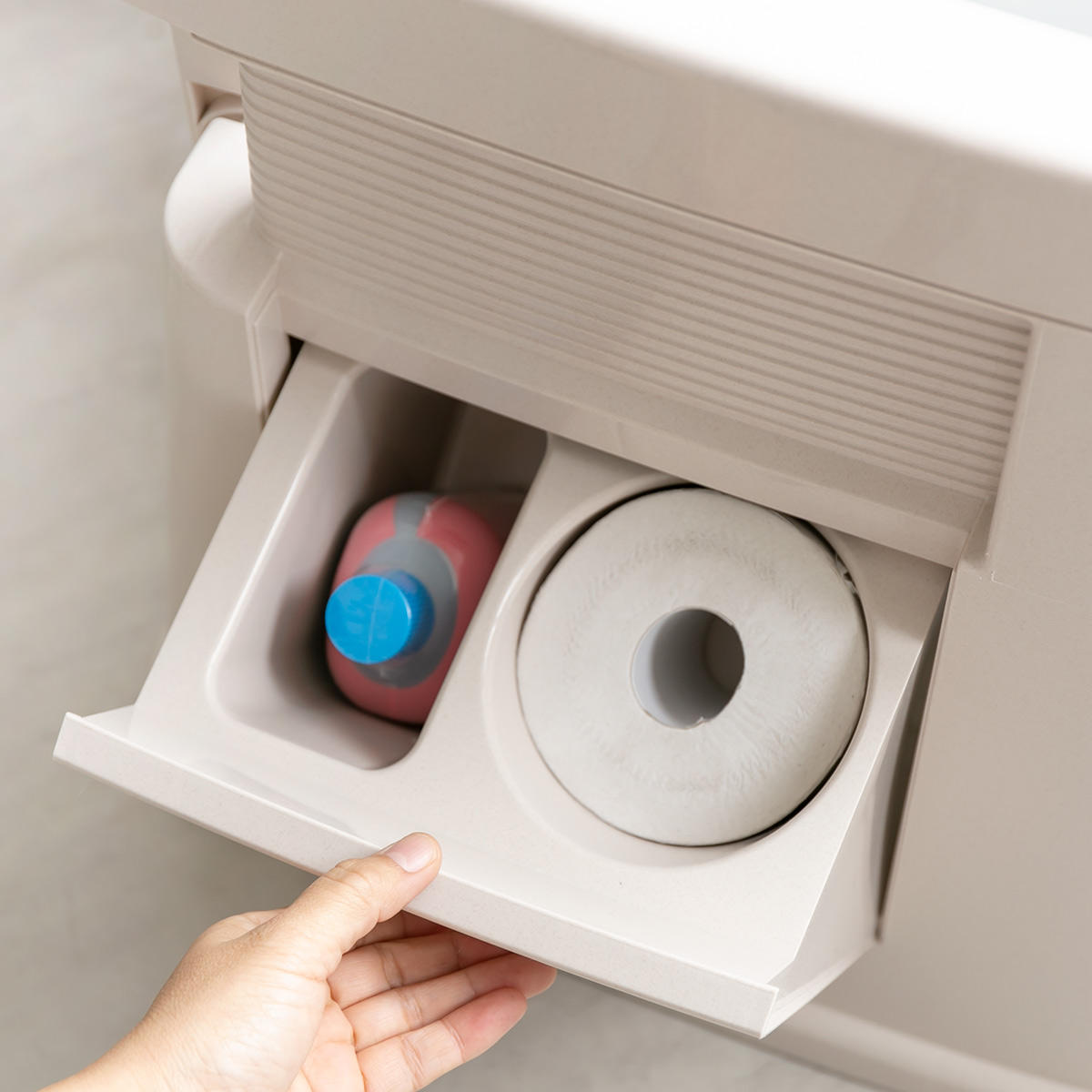 | 温かい便座カバー 貼って使える便座カバー付きです。座った瞬間にヒヤッとしません。 | ポケット付き 便器側面に小物やペーパーを収納できる内蔵ポケットがあります。 |