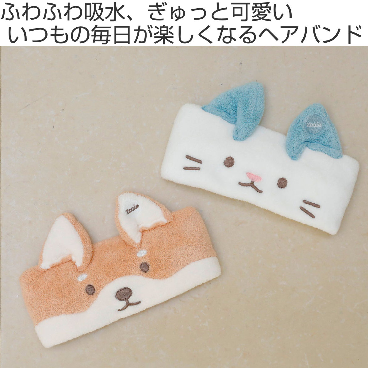 ヘアバンド 吸水アニマルヘアバンド Zooie fam ( 吸水キャップ ターバン マイクロファイバー お風呂 吸水 速乾 吸水速乾 ヘアーバンド バンド アニマル 洗顔 動物 耳 カットパイル ) 【ネコ】