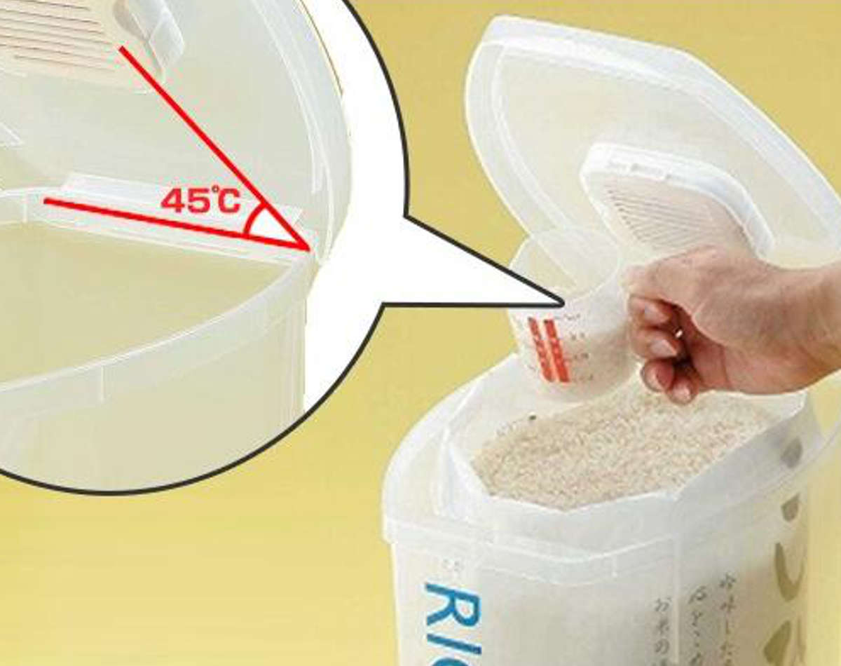 5kgの米袋を縦方向にそのまま収納・保存ができる米びつです。袋のまま収納できるので、移し替える手間が省けます。重いお米を米びつへ移し替える面倒も解決。お手入れもしやすいです。