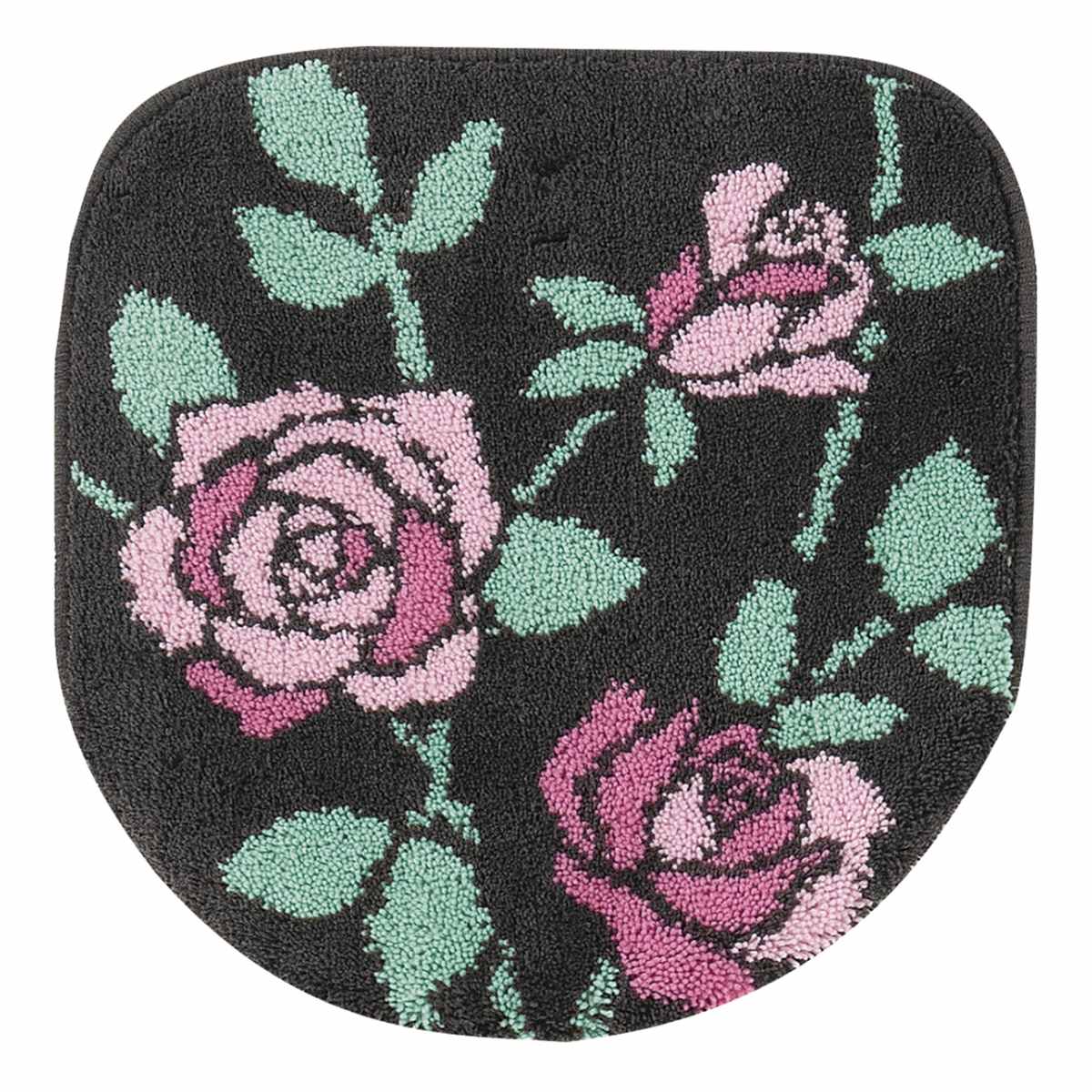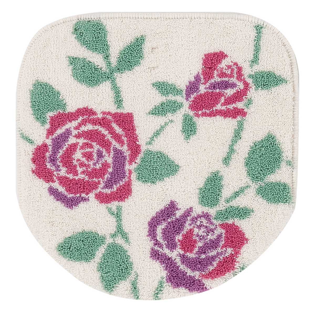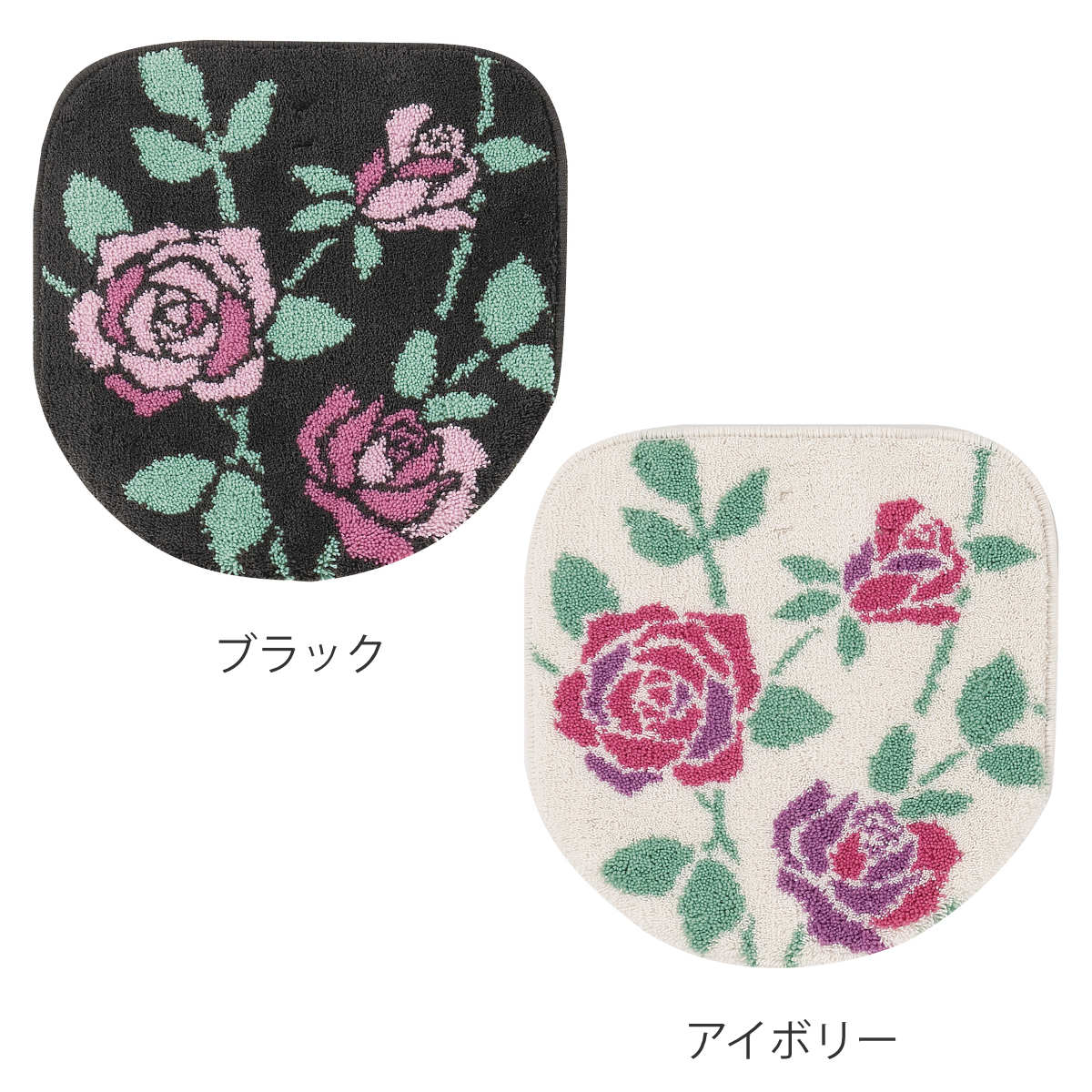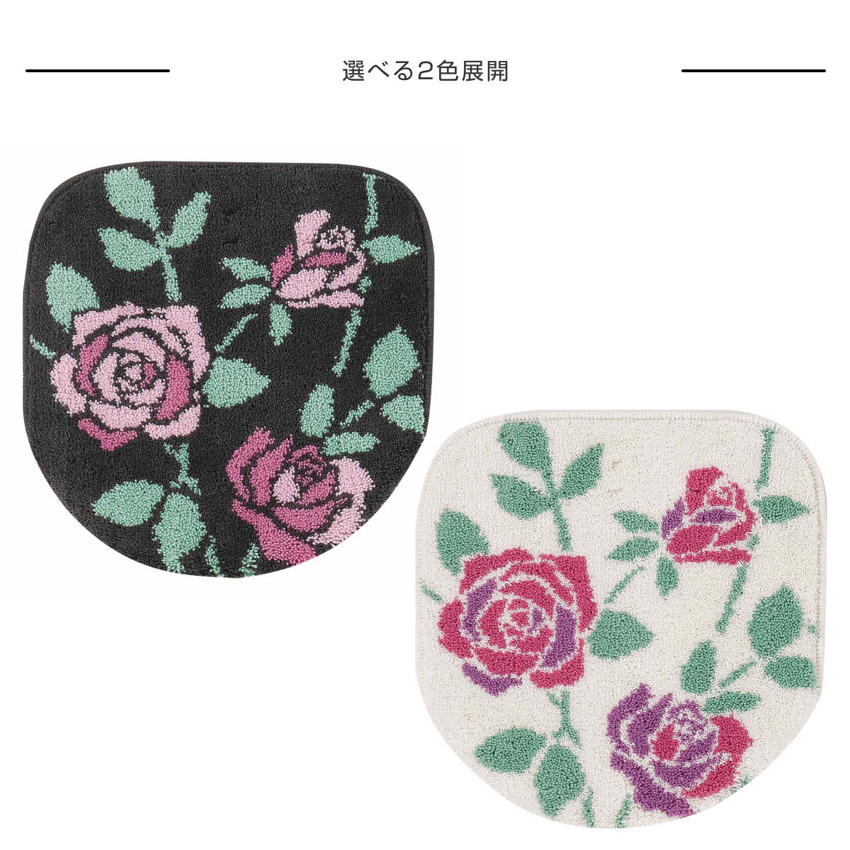 トイレ蓋カバー 兼用フタカバー グレイス ( 蓋 フタ カバー 吸盤 U型 O型 洗浄暖房型 兼用タイプ 洗濯OK トイレタリー ふたカバー 丸洗い 薔薇柄 ブラック アイボリー ) 【アイボリー】