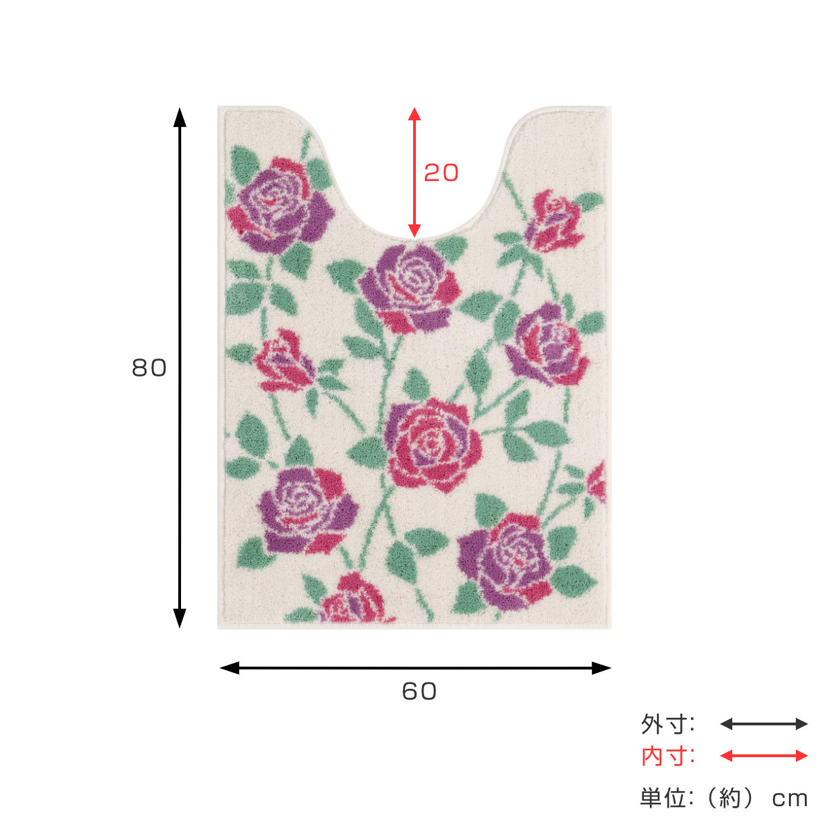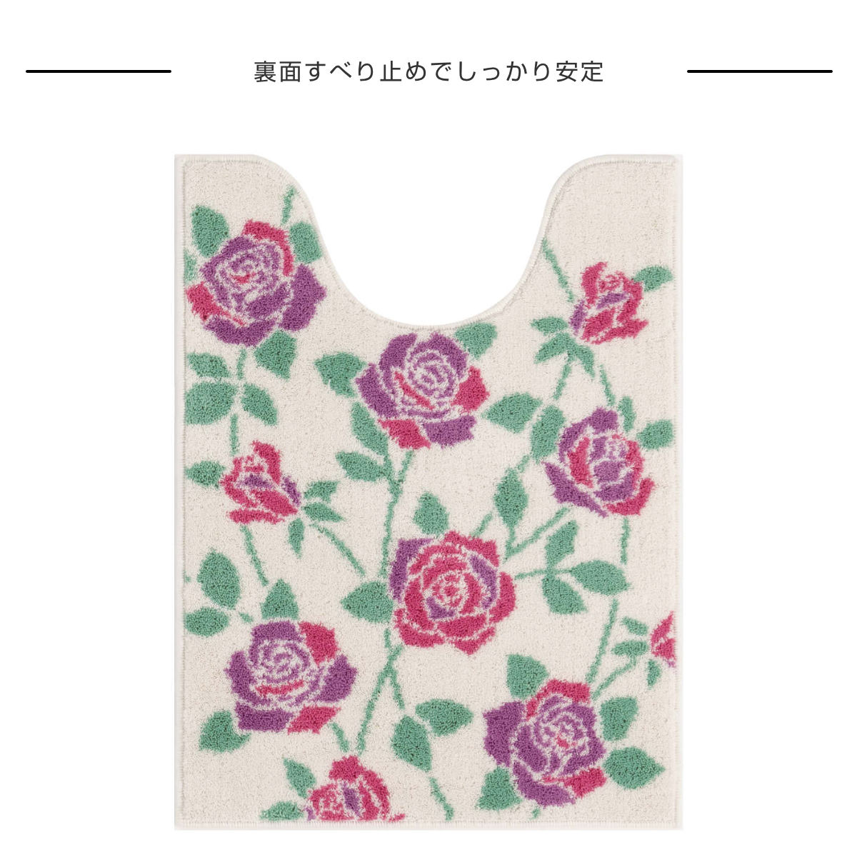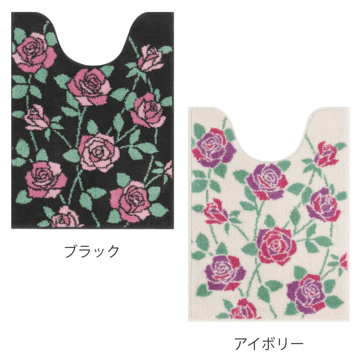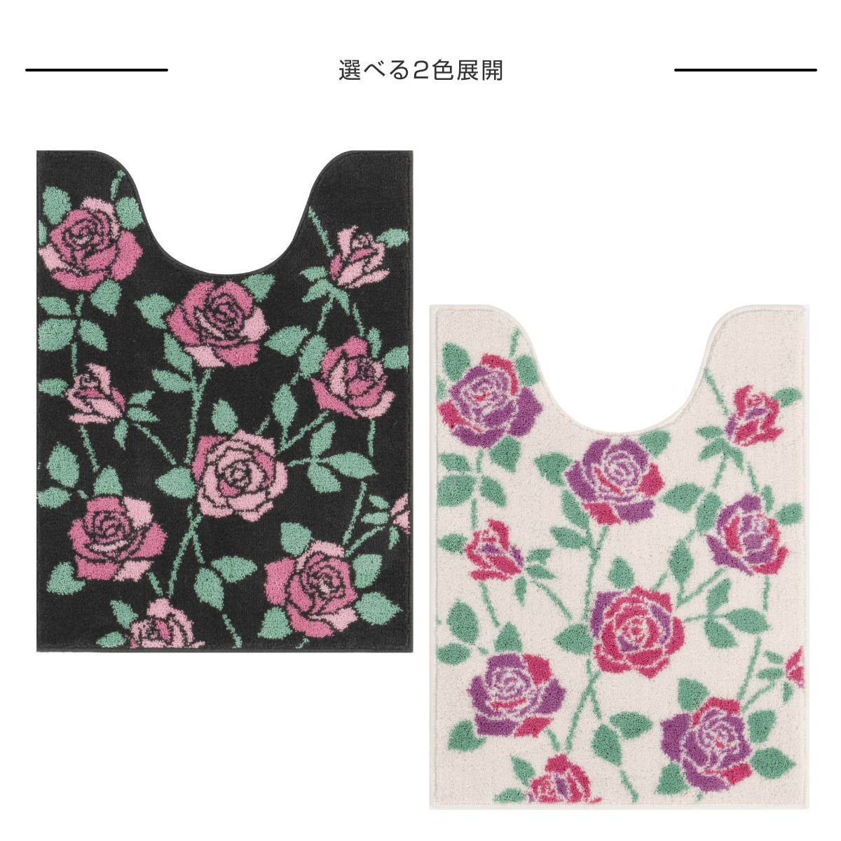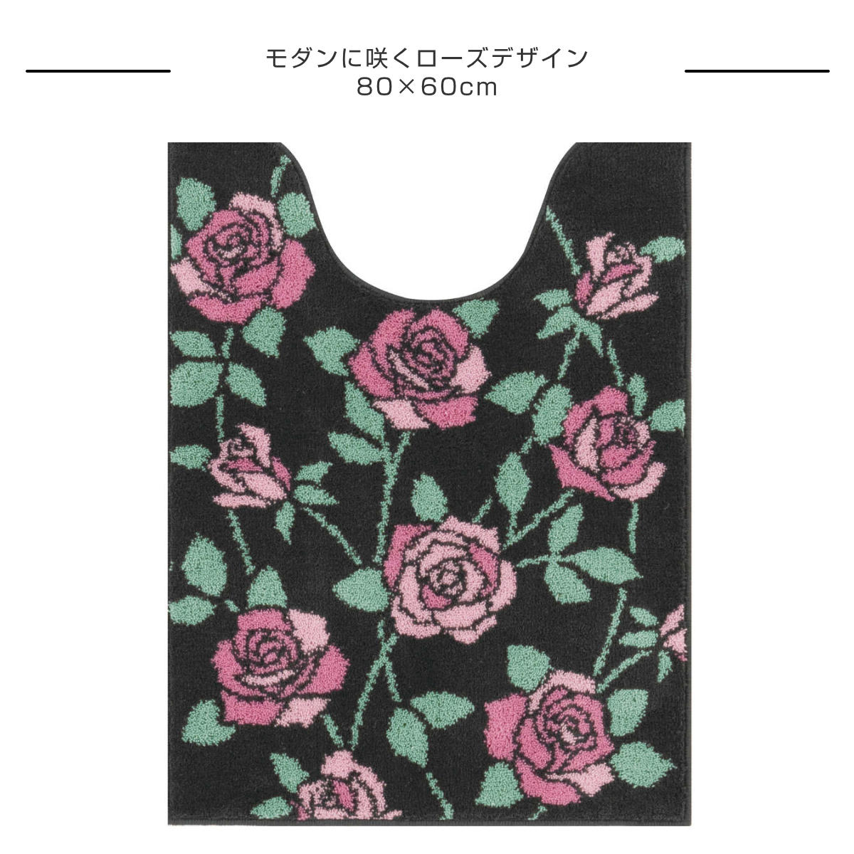 ●モダンに描かれた薔薇が美しい、華やかで艶やかなトイレマット80×60cmです。