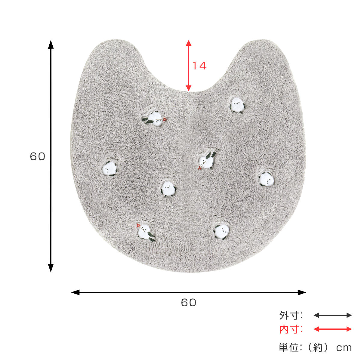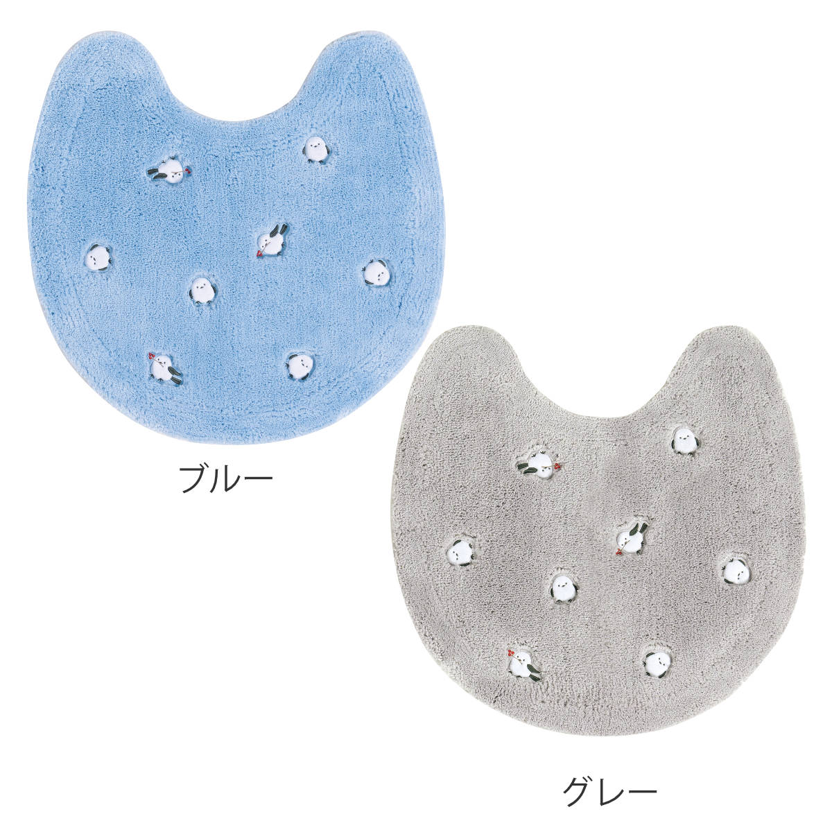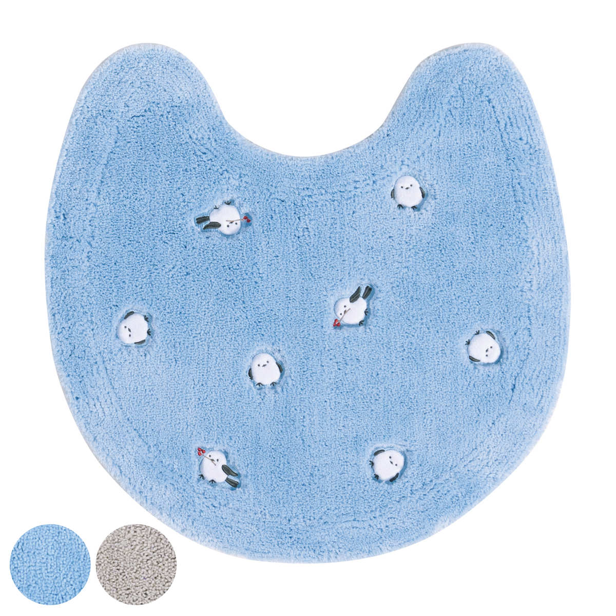 トイレマット 60×60cm プチシマエナガちゃん ( トイレ マット 足元マット ロングタイプ すべり止め シマエナガ 洗濯可 トイレタリー 滑り止め 洗える 60×60 しまえなが 小鳥 雪の妖精 ブルー グレー ) 【グレー】