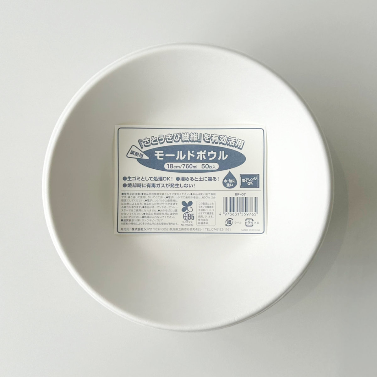 さとうきび繊維を有効活用した、環境に優しい業務用のモールドボウルです。埋めると土に還るので、生ゴミとして処理できます。焼却時に有毒ガスが発生する心配がなく、安心してお使いいただけます。