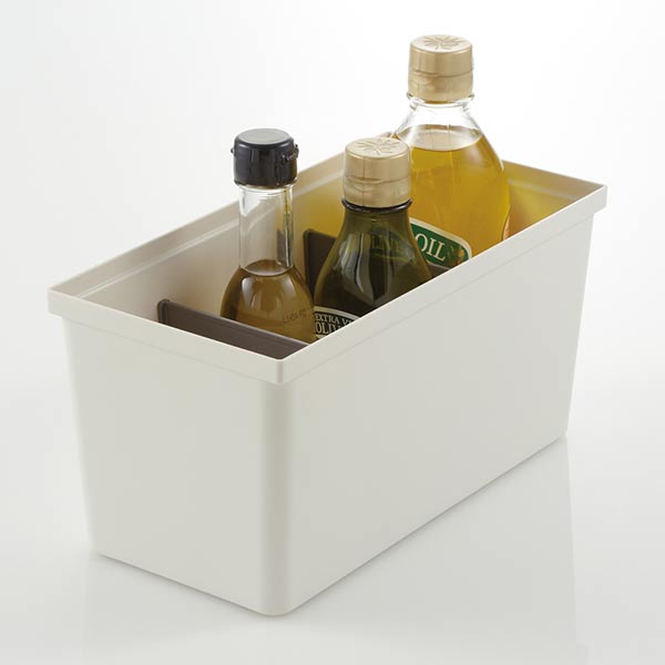 システムキッチンの整理整頓に便利です。引き出し内のごちゃつきやすい調味料やキッチンツールなどをスッキリ収納できます。プラスチック製なので、水洗いできてお手入れ簡単です。