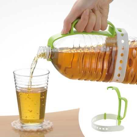 ![]() 持ちやすい大きめのハンドルが特長で、シリコン製のベルトでしっかりと固定し、注ぐ時にも持ちやすいようにハンドル位置を設定しています。 | ![]() 500ml~1Lのほとんどの飲料用ペットボトルに対応しています。 ※醤油や油など調味料用のペットボトルには使わないで下さい。 ※ペットボトルの種類によっては取り付けできない場合があります。 | |