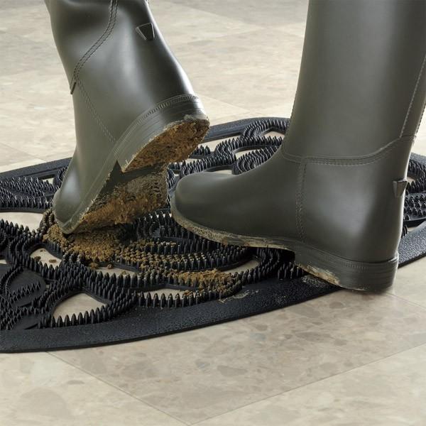 表面の凸凹のブラシ効果で、靴底についたドロや、雪をしっかりかきとります。玄関で汚れを落とすことで、家の中をいつも清潔に保てます。