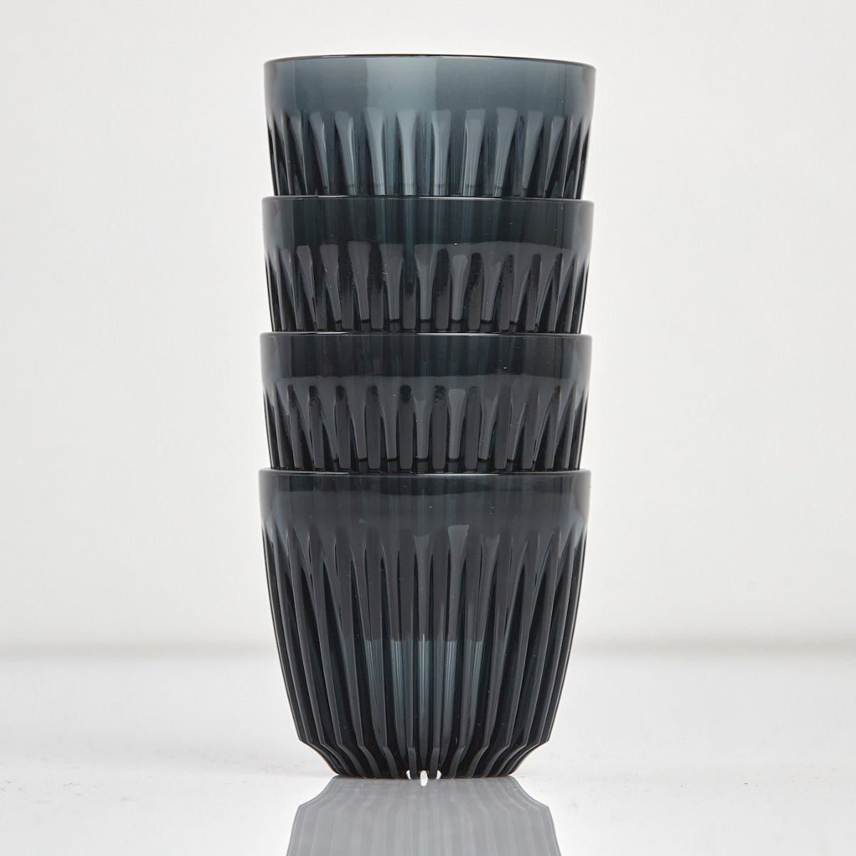 フィンと呼ばれる凹凸の表面加工がスタイリッシュな見た目と持ちやすさを実現し、ホットドリンクを入れても取っ手なしで持ちやすい設計です。