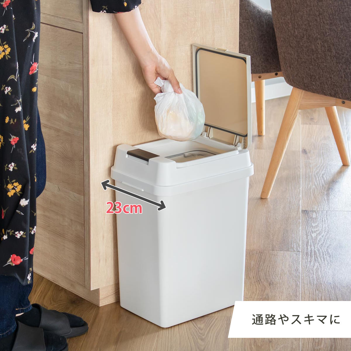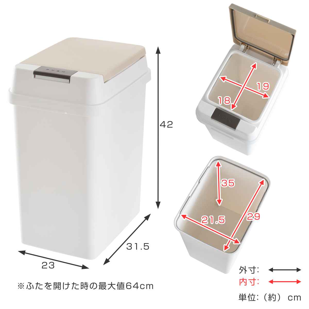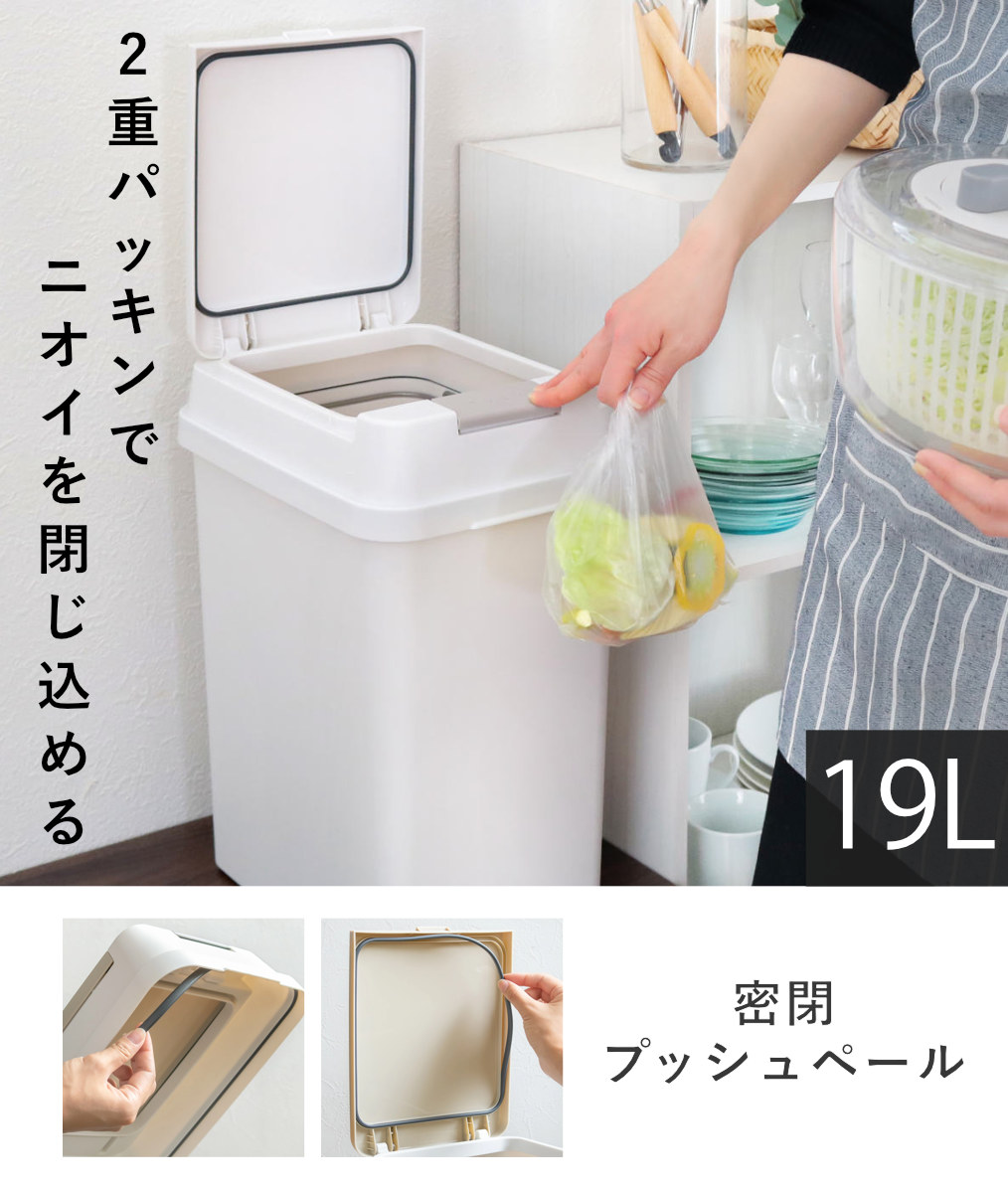 ゴミ箱 19L 密閉 プッシュ式 ( ごみ箱 約20L 約20リットル 幅23 プッシュ ふた付き 分別 角型 ニオイ漏れしにくい パッキン付き コンパクト ニオイ漏れ 防止 生ゴミ シンプル 赤ちゃん ペット キッチン シンク下 棚下 日本製 ) 【ホワイト】