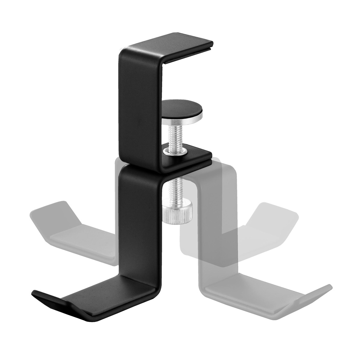 手に取りやすいデスク横にクランプ式でしっかり固定できる、360度回転式のヘッドホンホルダーです。お好みの向きに調整でき、使いたいときにサッと手に取れます。