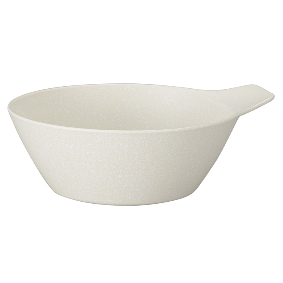 樹脂製で軽く、落としても割れにくいとんすいです。表面にざらつきがあるため傷がつきにくく、手にしっかり馴染んで滑りにくいのが特徴です。容量は380mlで、鍋料理の取り鉢としてはもちろん、小鉢や汁気のあるおかずにも使いやすいです。