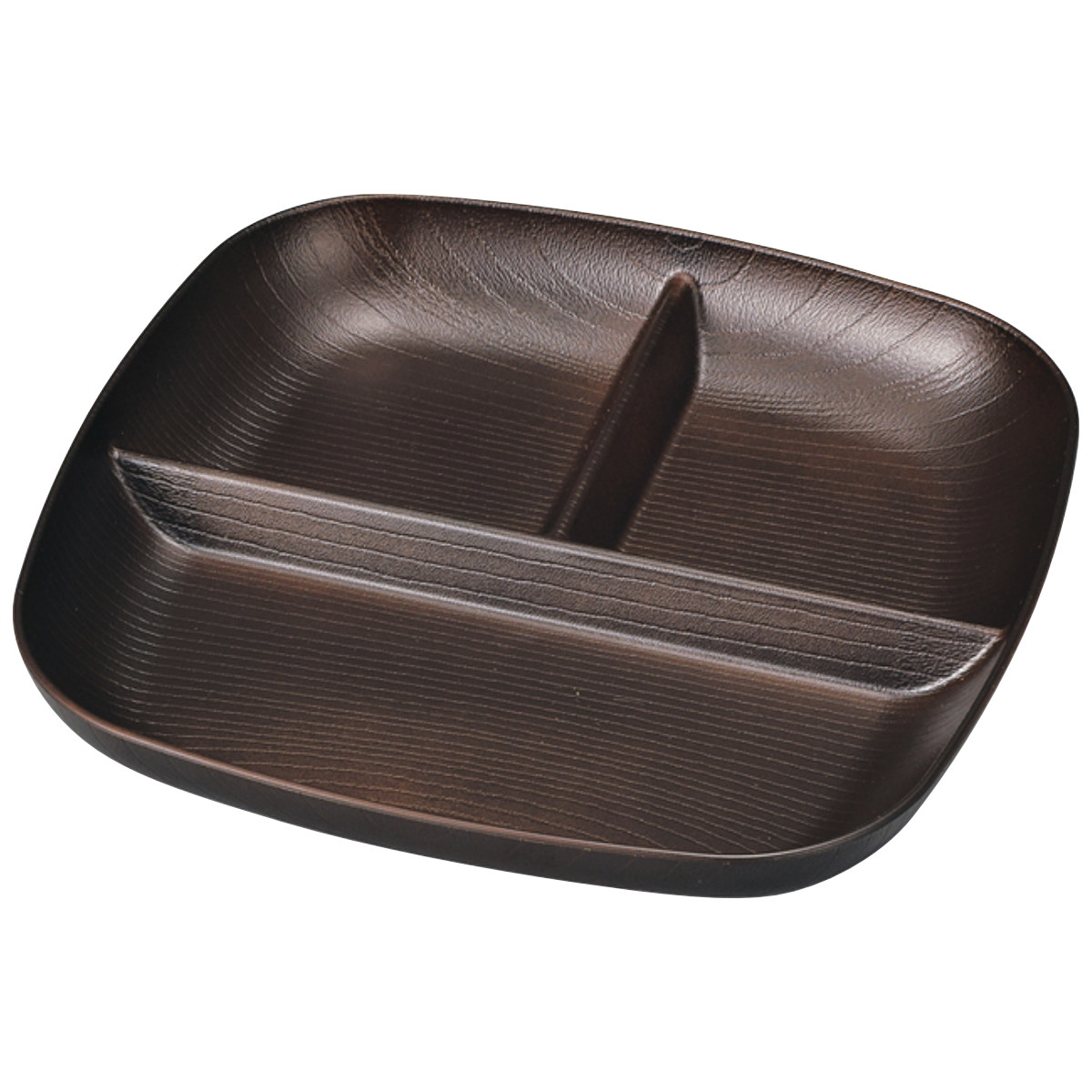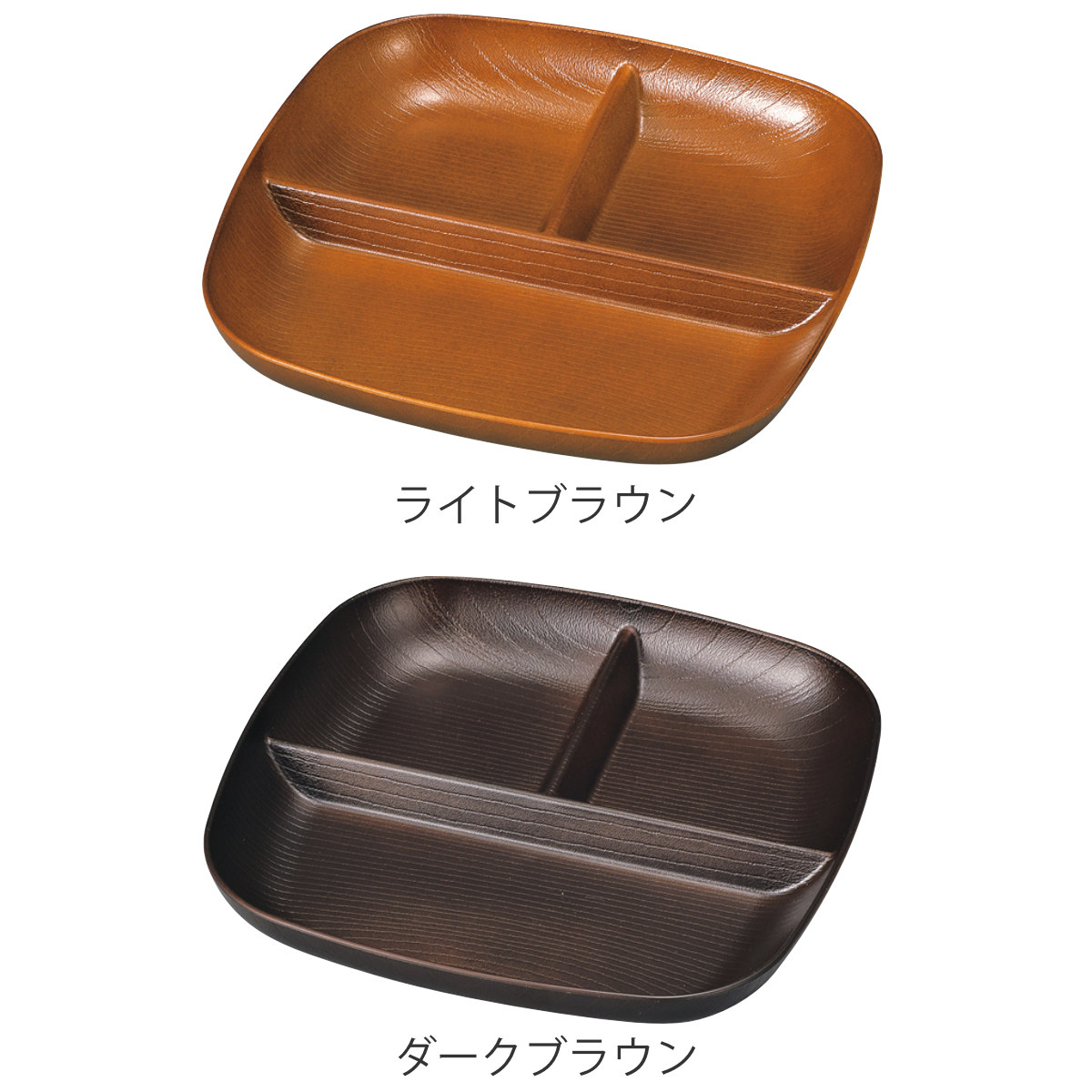 ランチプレート 欅杢目スクウェアプレート ( 電子レンジ対応 食洗機対応 樹脂製 日本製 皿 お皿 食器 プレート 仕切皿 仕切り皿 おしゃれ 和モダン 和風 ナチュラル 木目調 カフェ風 ) 【ダークブラウン】