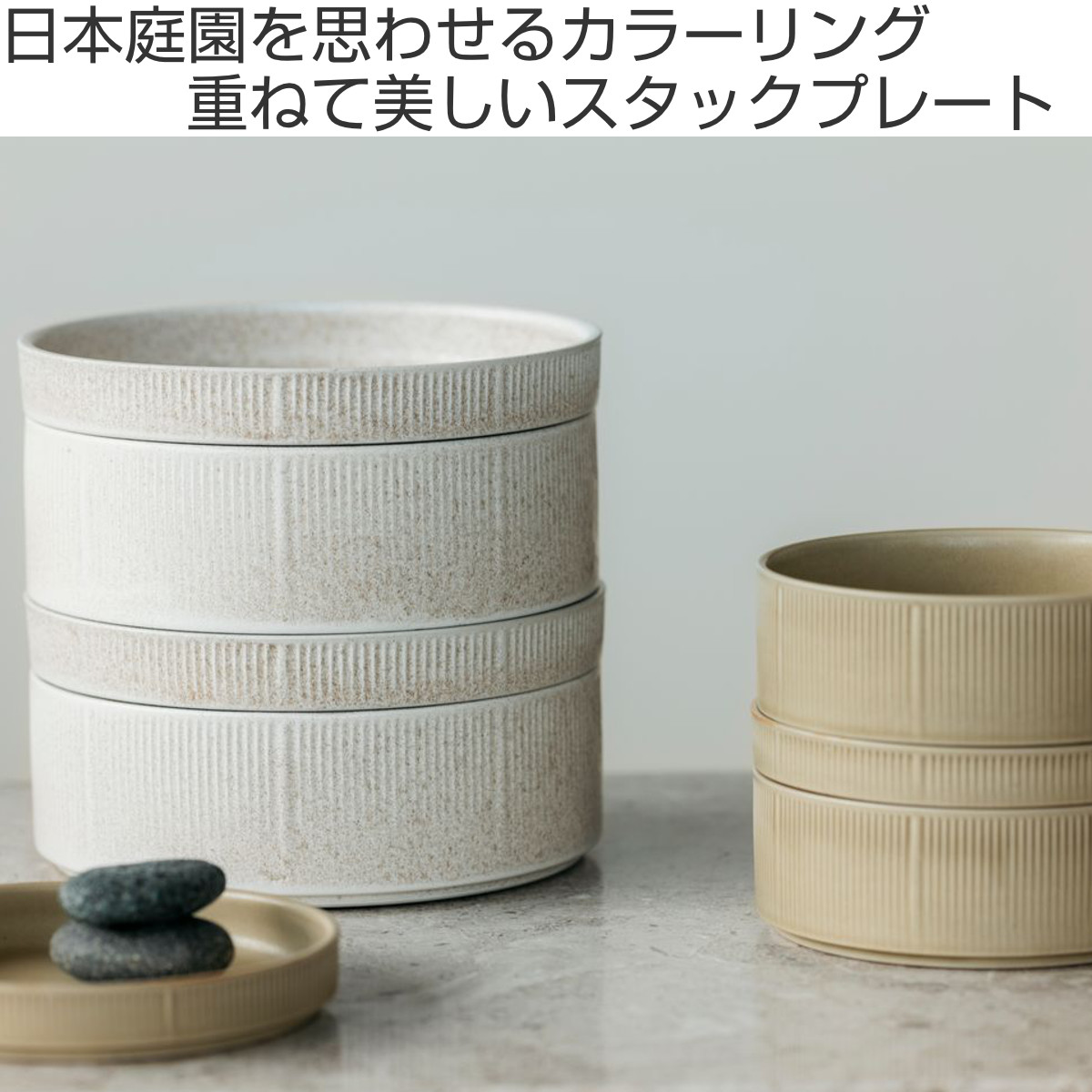 同シリーズのボウルとスタッキングできるため、お重のように重ねて盛り付ける演出も楽しめます。使わない時は重ねて省スペースに、すっきりスマートに収納できます。