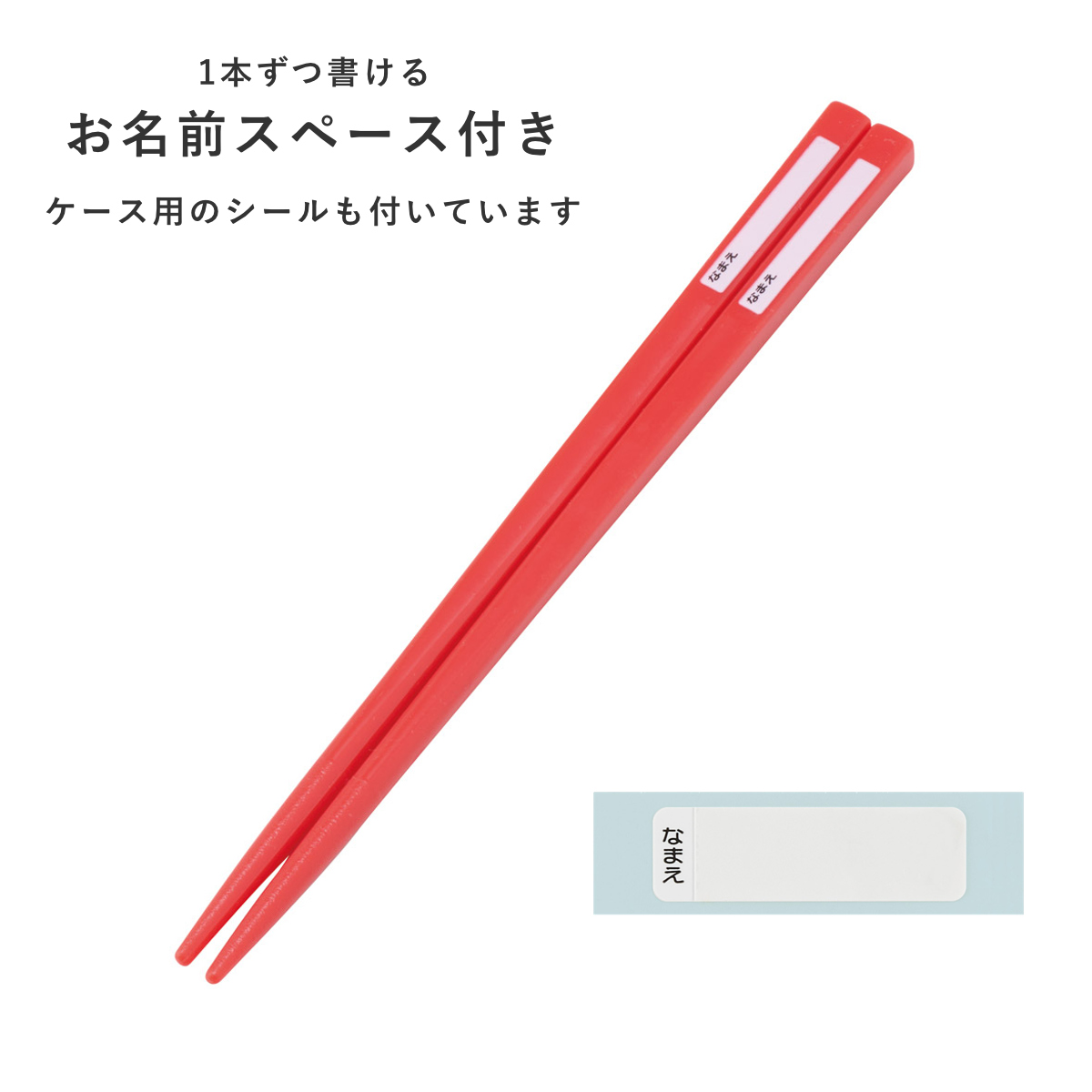 お箸には1本ずつ名前を書き込める名前スペースがあります。ケース用のシールも付いています。