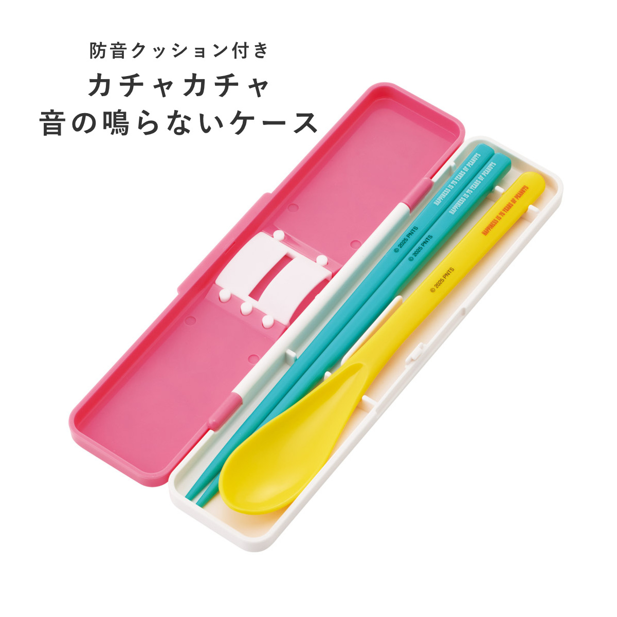 カトラリーを持ち運ぶときに、ケースにあたってカチャカチャ音が鳴りにくいようにケースの中に防音クッションが付いています。クッションがスプーンとお箸をしっかり押さえ、上下左右に動かないので音が鳴りにくい仕様です。