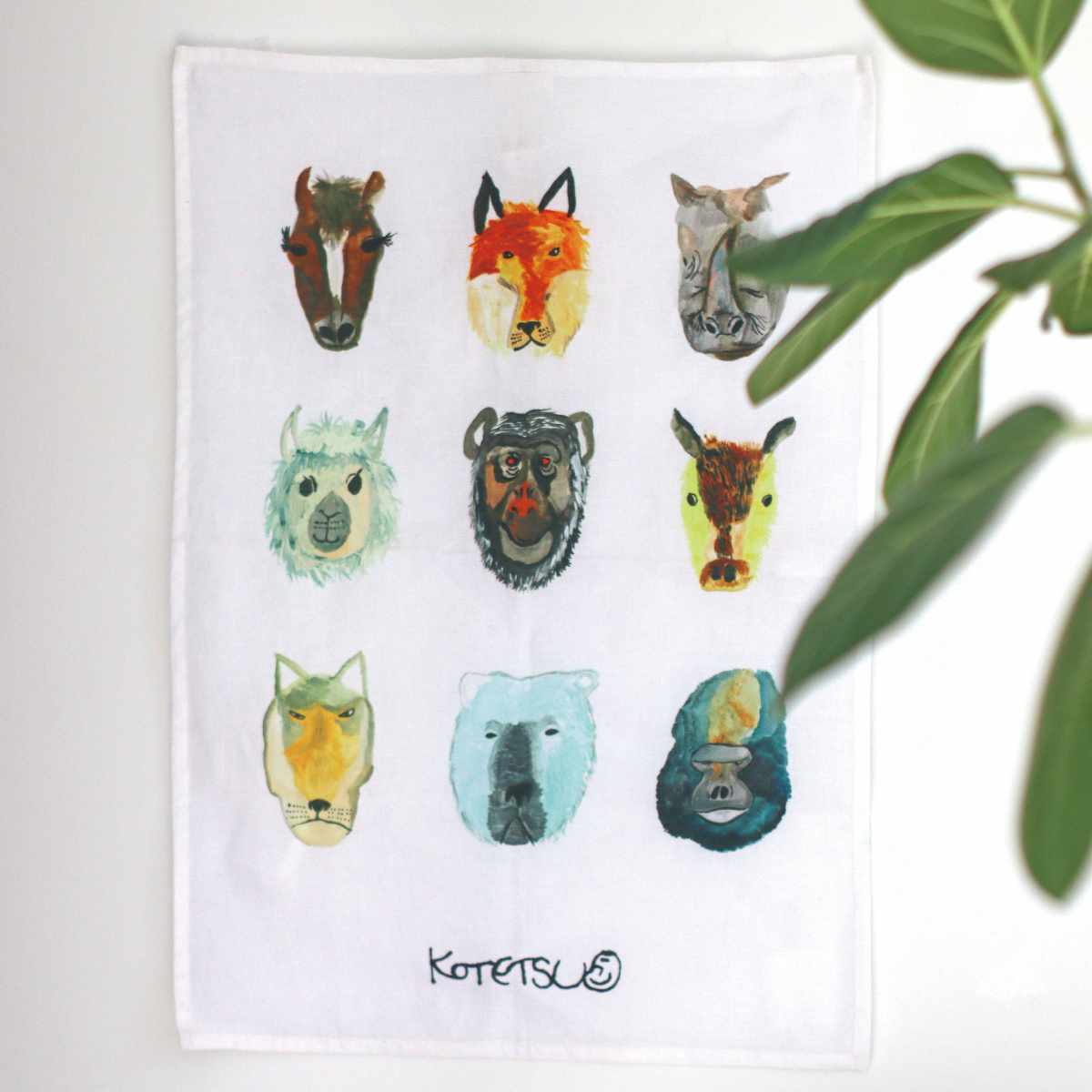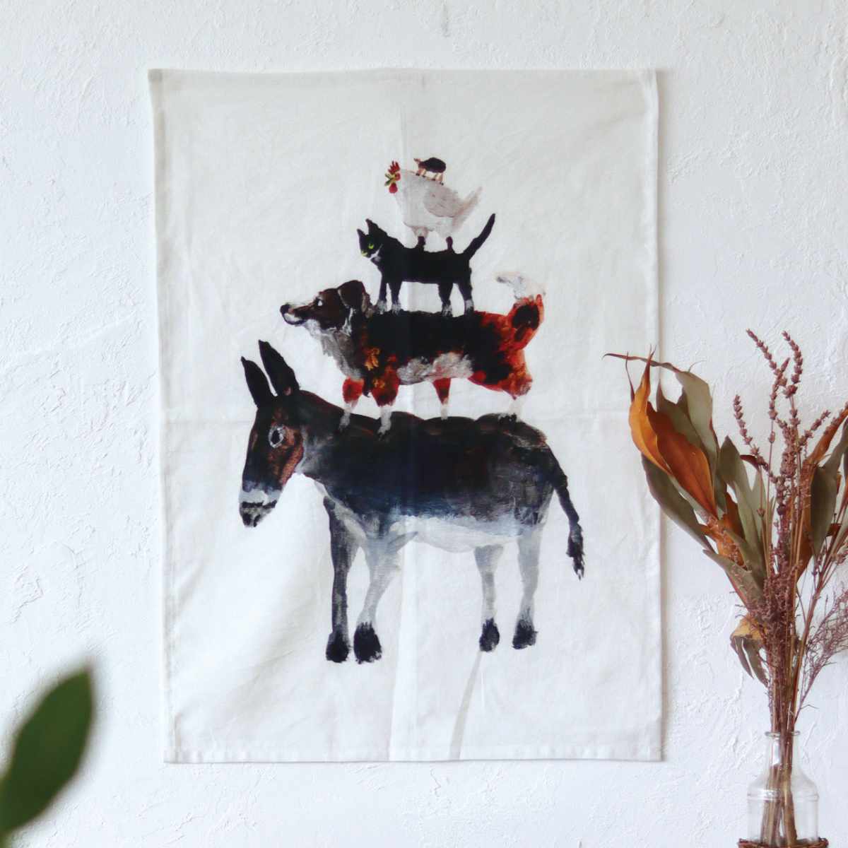 キッチンクロス アトリエ KOTETSU キッチンタオル アニマル ( タオル ふきん クロス アトリエコテツ 猫 タペストリー 手拭き 食器拭き 台拭き ループ付き 速乾 吸水 丈夫 壁飾り アート ) 【ネコ】