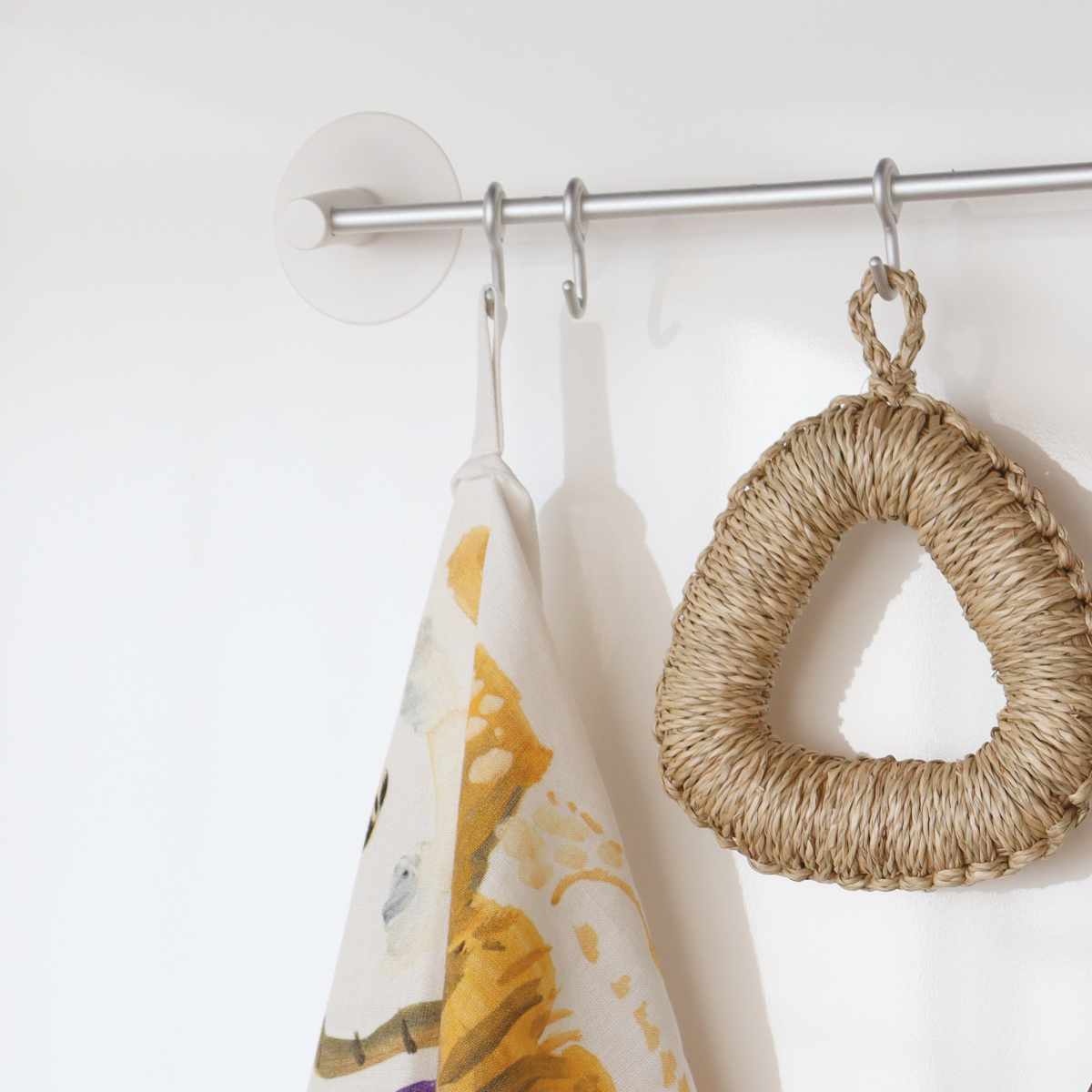 見ているだけで気持ちが和むカラフルな色づかいのデザインは、掛けておくだけでもインテリアのアクセントになります。ループ付きなので、使いやすい場所に吊り下げておくことができます。