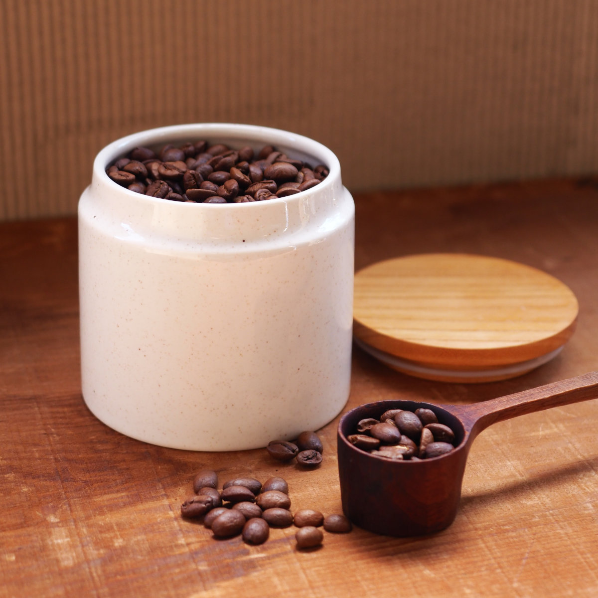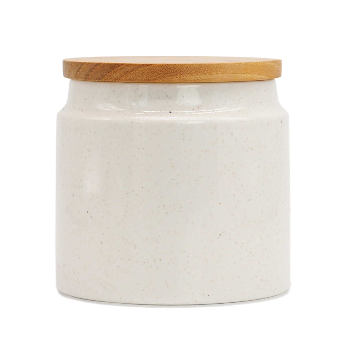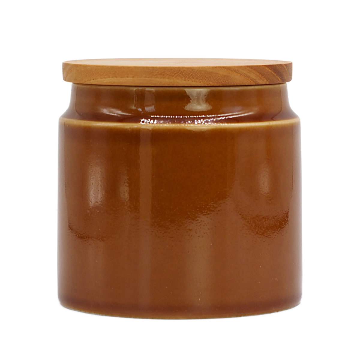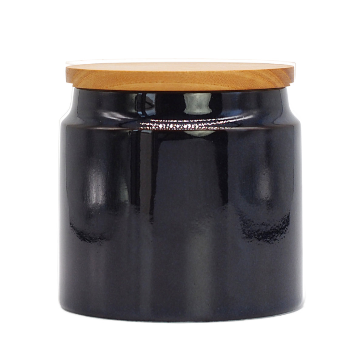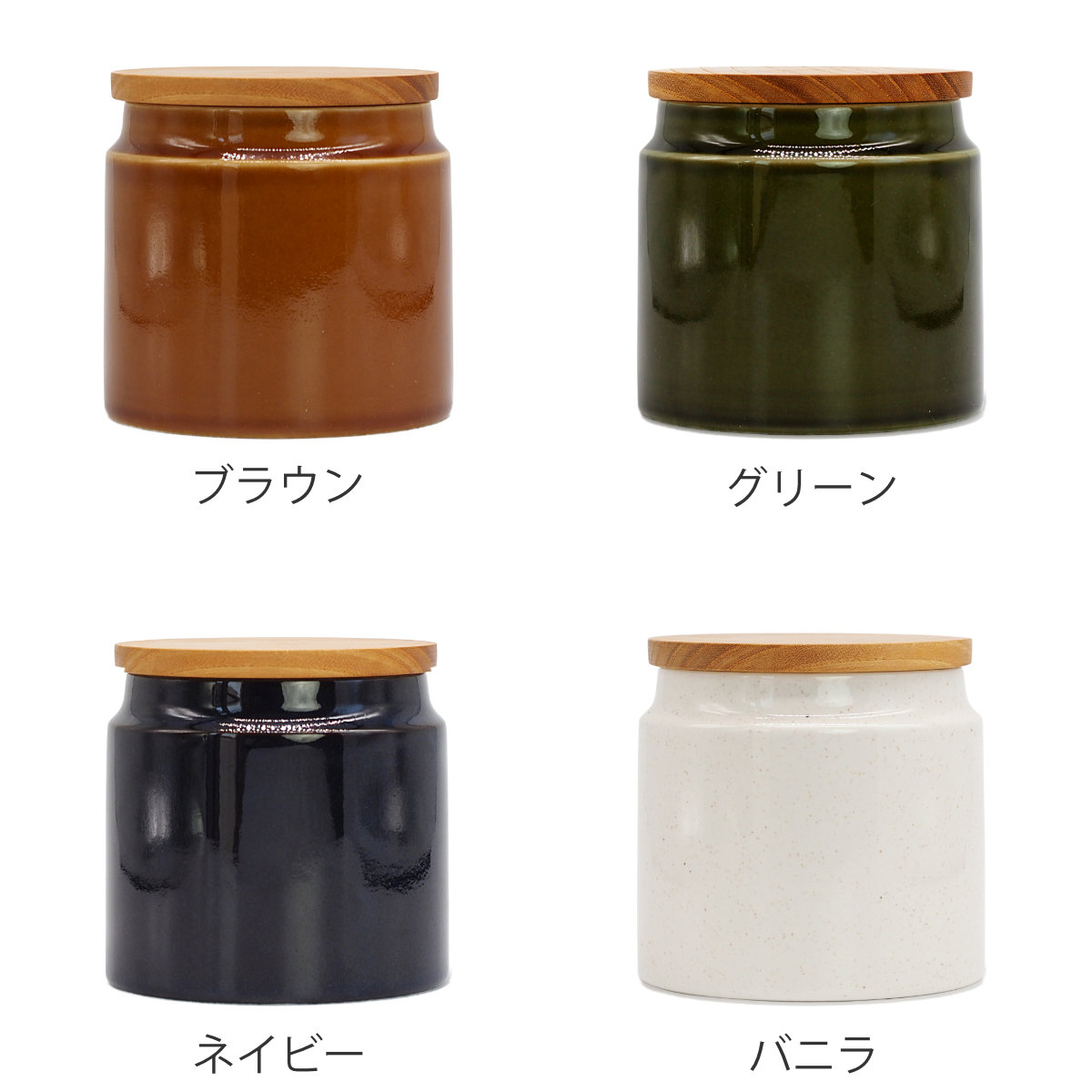 陶器の本体に、滑らかなケヤキ材の木蓋を組み合わせたキャニスターです。調味料やお茶・コーヒー豆、砂糖や塩などの保存はもちろん、小物入れとしても活躍します。中身をキャニスターの色ごとに分けることで、キッチンに統一感を持たせてくれます。