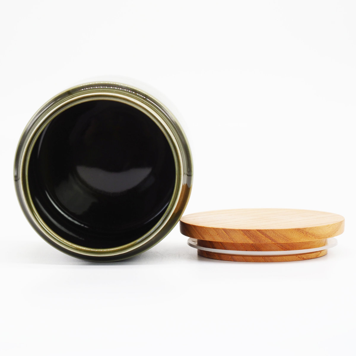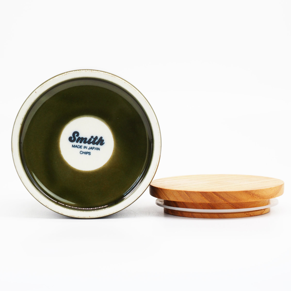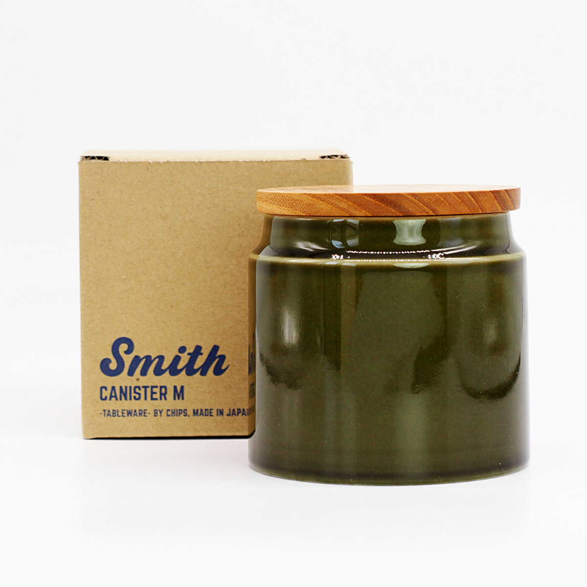 保存容器 キャニスター Smith Canister M ( 調味料容器 調味料入れ ストッカー 450ml 磁器 密閉 パッキン付き 木蓋 日本製 0.45L 丸型 コーヒー豆 粉 珈琲豆 紅茶 砂糖 塩 調味料ポット 小物収納 ) 【グリーン】