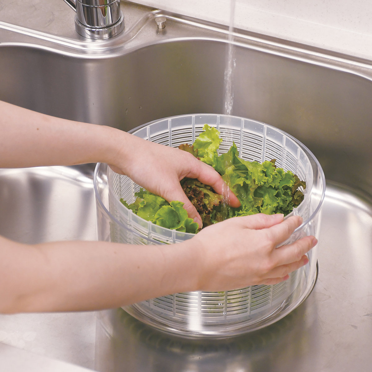 ●蓋をしてワンプッシュするだけで、内ボウルが勢いよく回転し、遠心力でしっかりと水を切ることができます。