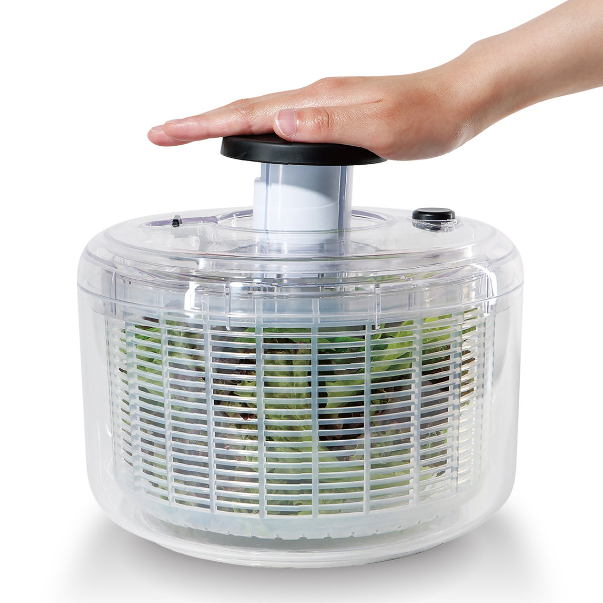 サラダスピナー ガジェコン 押すだけ! 野菜水切り器 ( 野菜水切りかご スピナー 手動 ボウル コランダー ザル ボタン 下ごしらえ用品 時短 便利グッズ キッチンツール クリア )のレビュー
