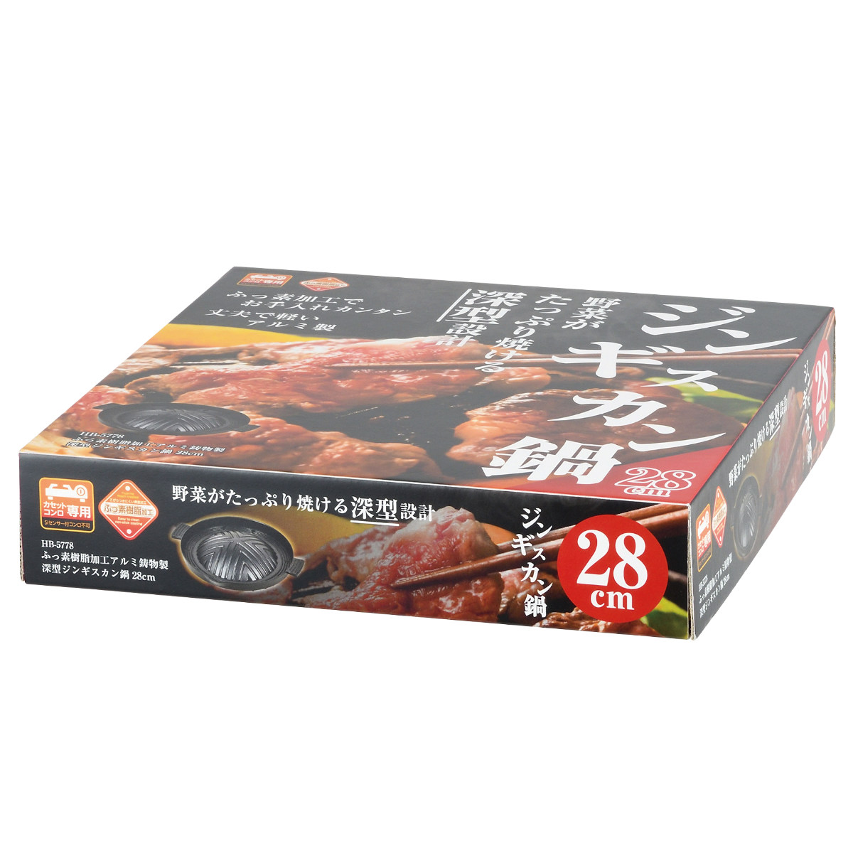 ジンギスカン鍋 28cm 深型 フッ素加工 アルミ鋳物製 ( ジンギスカン アルミ鍋 焼肉 フライパン カセットコンロ専用 焼肉プレート 焼き肉 キャンプ アウトドア BBQ ふっ素加工 )