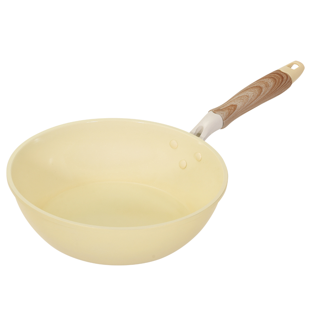 フライパン 24cm 深型 IH対応 セラミック 軽量 ハルミック ( ガス火対応 オール熱源対応 セラミックフライパン 炒め鍋 軽い 24センチ 深型フライパン いため鍋 アルミ製 直火 木目調ハンドル こびりつきにくい 可愛い ) 【ペールピンク】