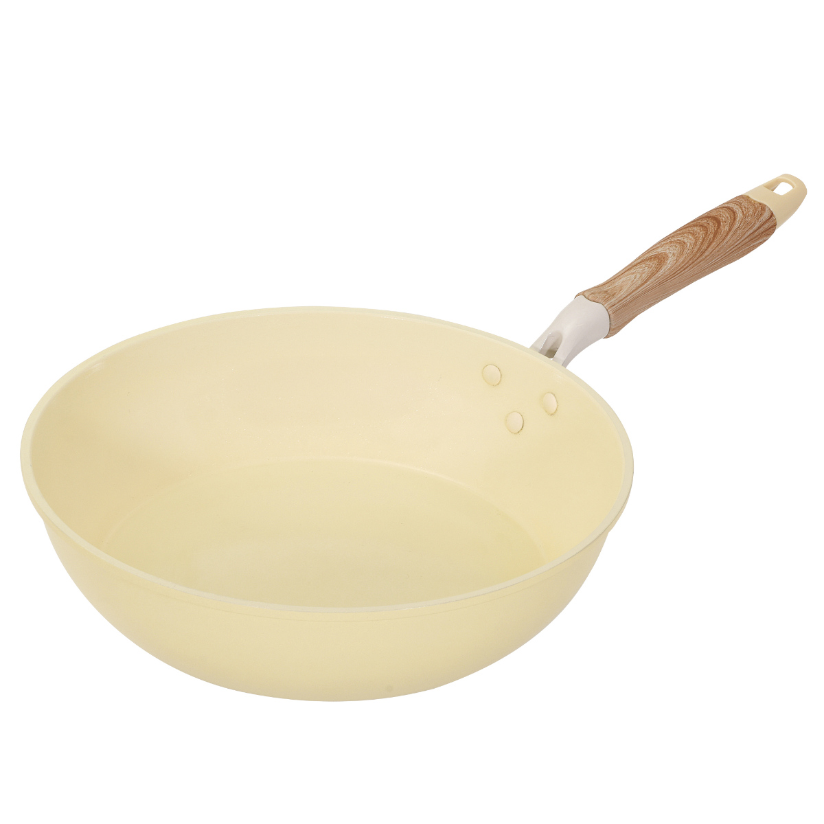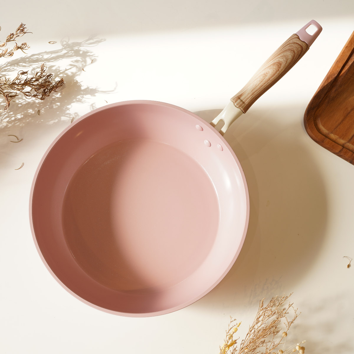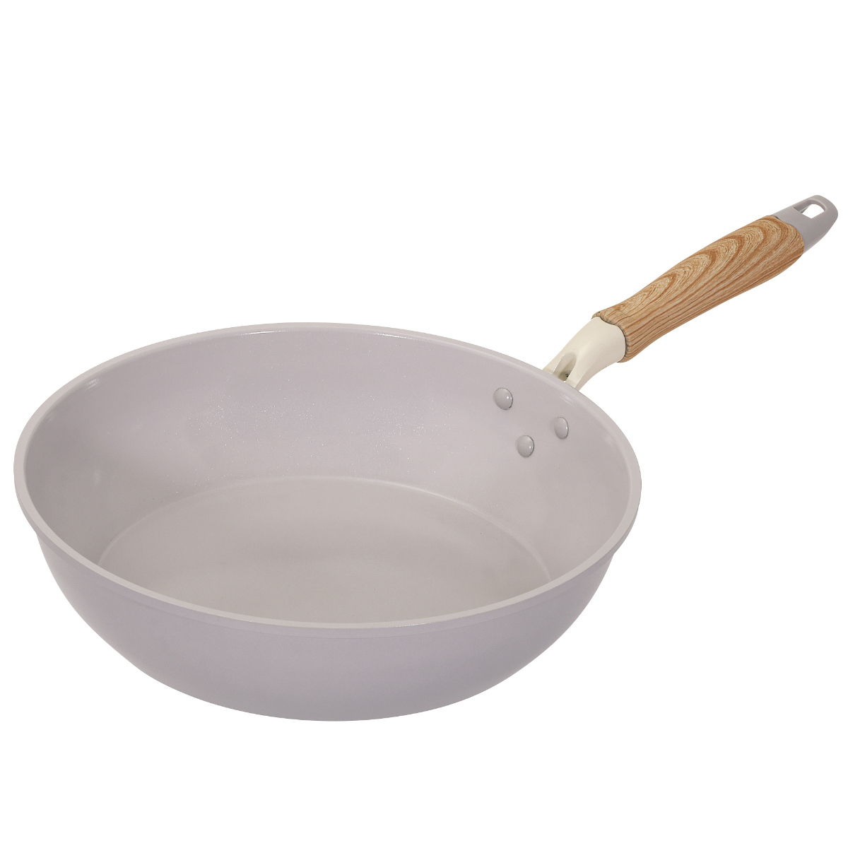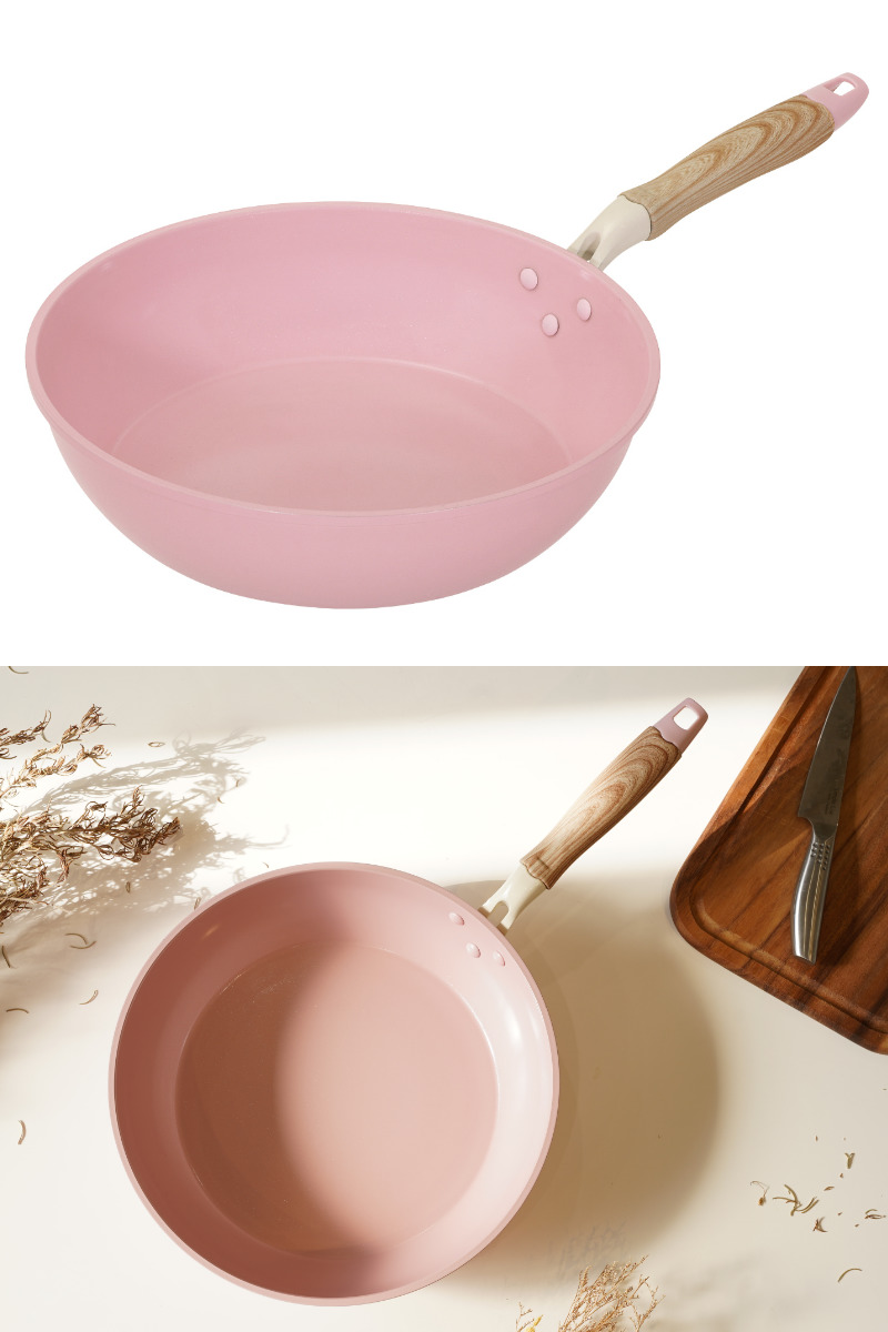 炒め鍋 28cm IH対応 セラミック 軽量 ハルミック ( ガス火対応 オール熱源対応 セラミックフライパン 軽い 28センチ 深型 フライパン いため鍋 アルミ製 直火 木目調ハンドル こびりつきにくい 可愛い ) 【ペールピンク】