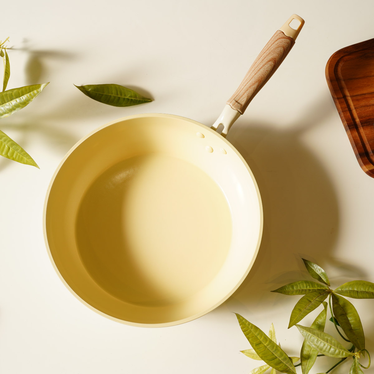 内面はセラミック加工が施されており、焦げつきにくく少量の油で調理できます。また、外面には焼き付け塗装が施されており、傷がつきにくく、丈夫で長持ちします。