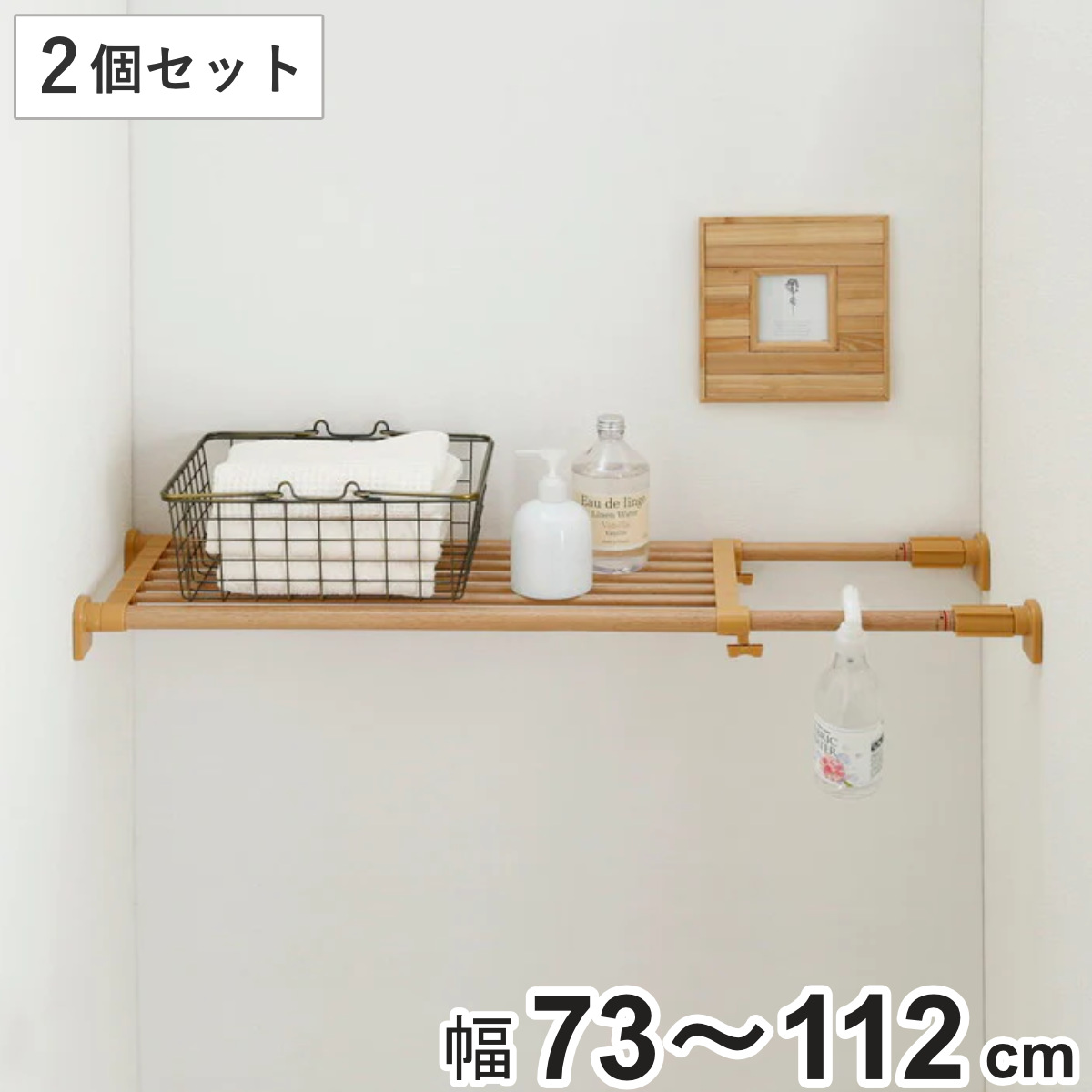 つっぱり棚 パワフル突ぱり棚 木調 取付幅:73~112cm ( 突っ張り棚 強力 つっぱり 突ぱり 突っ張り式収納 伸縮棚 ラック 棚 収納 木目柄 ナチュラル )