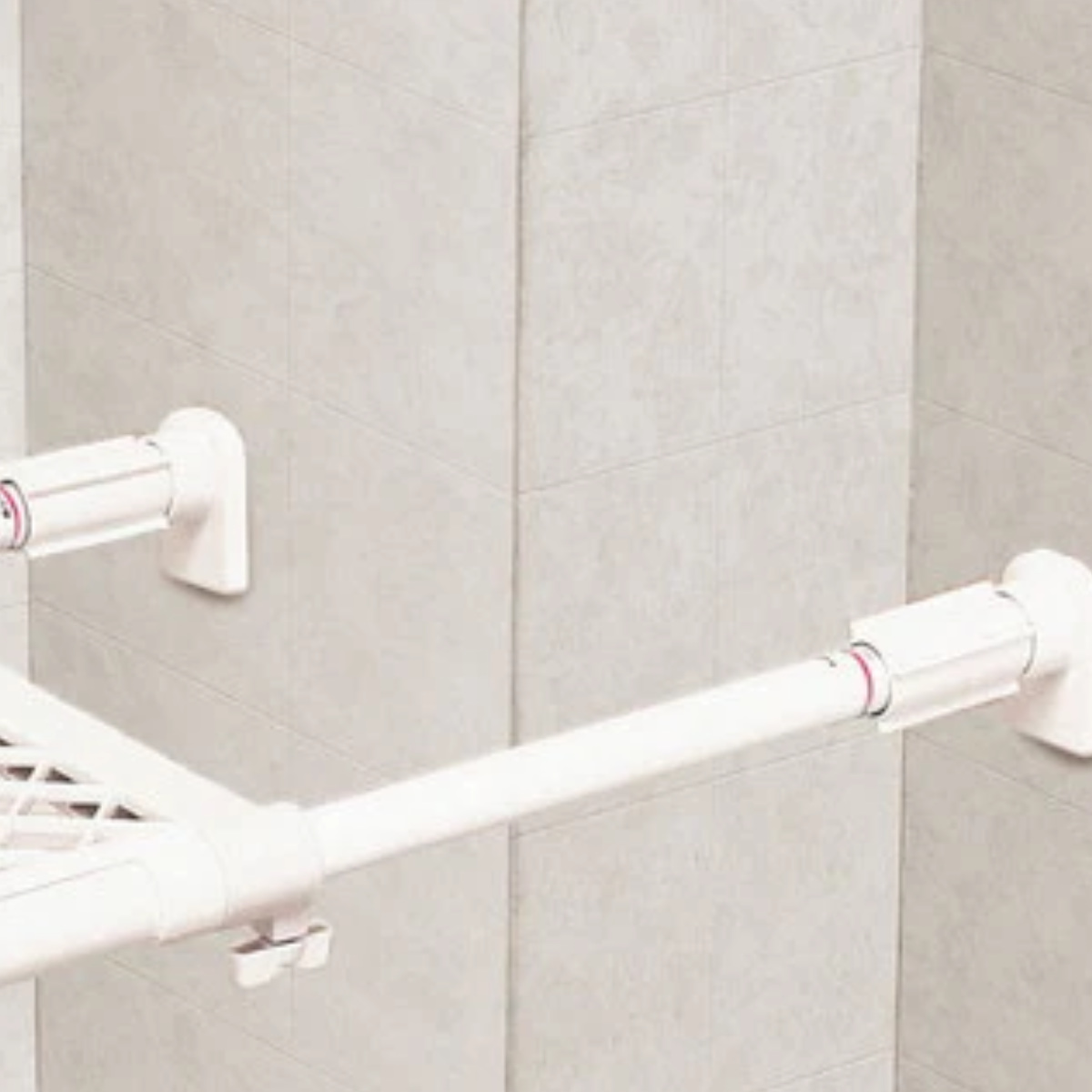 ジャッキ式は、パイプを伸ばして長さ固定ネジで固定してから、端のグリップを回して壁に圧着固定します。大型キャップで壁に強力圧着するので落ちにくいです。
