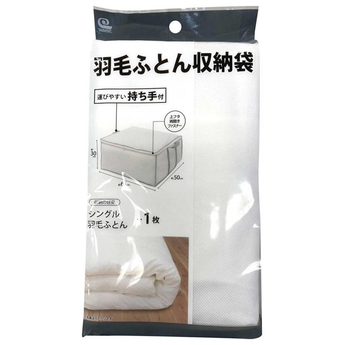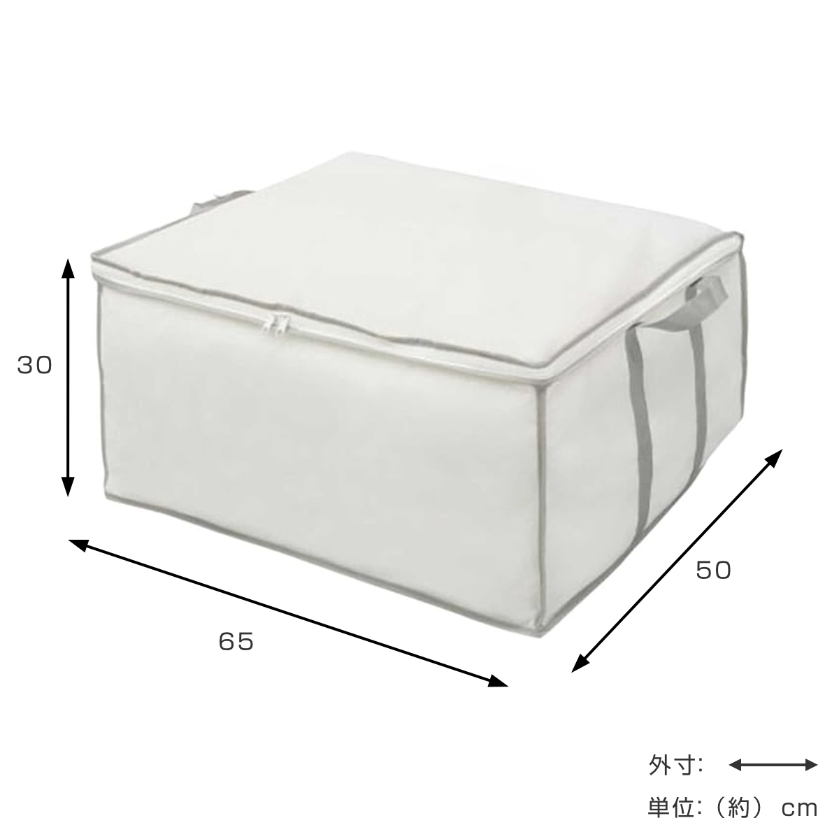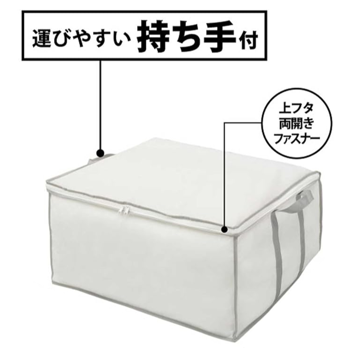 布団袋 羽毛布団袋 収納袋 持ち手付き 幅65×奥行50×高さ30cm ( 収納 クローゼット収納 布団 ふとん 布団収納ケース 羽毛布団 隙間収納 収納ケース 不織布 布団収納 袋 ふとん袋 ふとん収納 クローゼット シングル ホワイト )