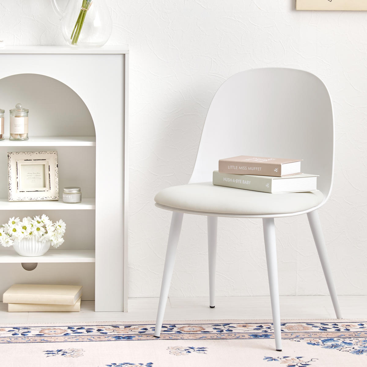 軽量で移動しやすく、長時間座っても疲れにくい形状です。作業スペースやドレッサー用の椅子としても扱いやすいサイズ感になっています。